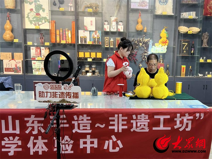 大众网记者在探访中发现,菏泽移动为其搭建了5G直播间,传承人通过直播镜头将穿、络、缚、拧等过程进行线上展示,带领网友沉浸式体验曹州绳艺,手机成为传承人的“新工具”,直播成为非遗技艺传播“新方式”。传承人介绍:“以前我们做出来都没有销售渠道,现在有了网络直播,不仅越来越多的人了解了这项非遗技艺,我们做出来的绳编作品还可以在线上销售,一举两得!”。