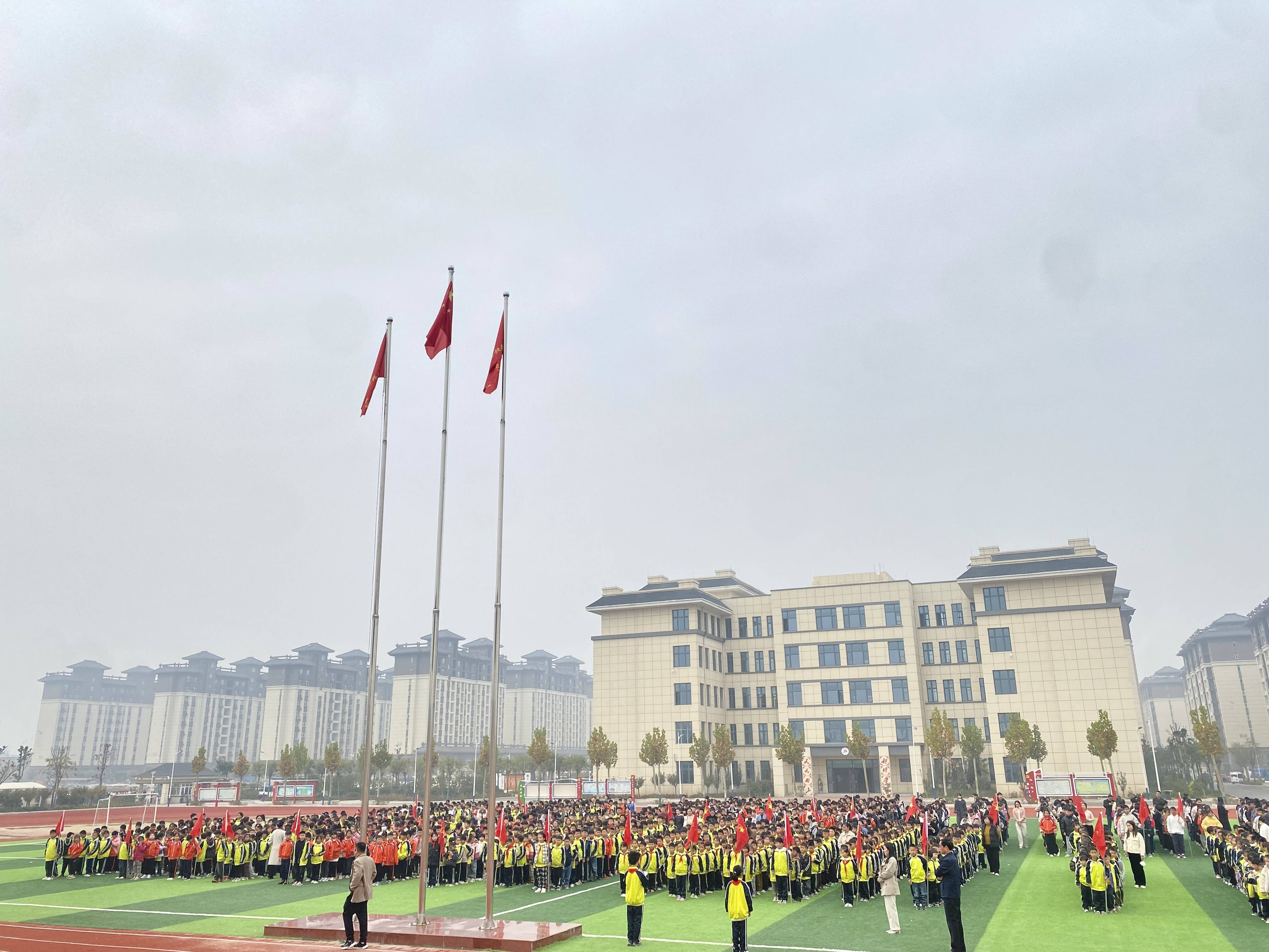 11月11日,单县终兴镇中心小学举行“交通安全,伴随你我”主题升旗仪式。