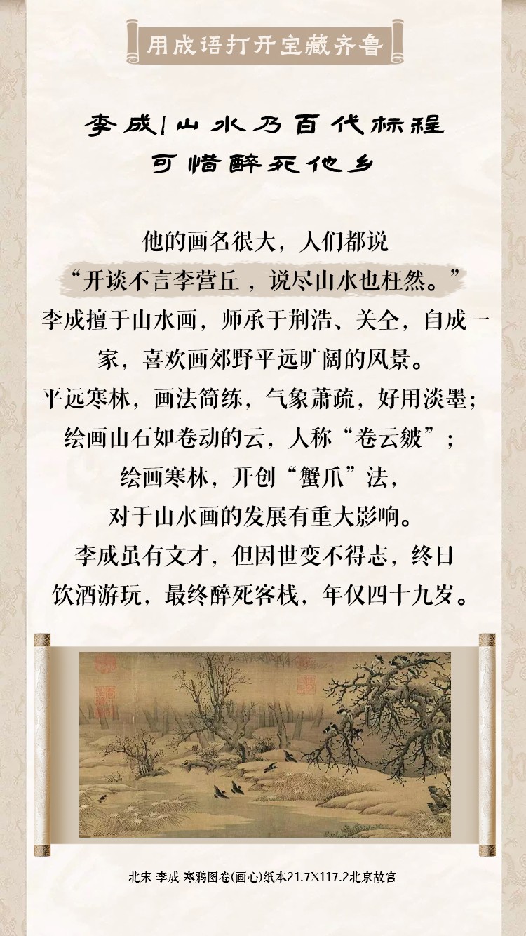 山东大地历史悠久、人文深厚,历史上名人辈出,许多成语深受齐鲁文化浸润和影响,背后有着诸多齐鲁文化元素。这些成语典故或出自孔孟儒家经典,或发端于古老的齐鲁大地。大众网·海报新闻推出《用成语打开宝藏齐鲁》栏目,带你穿越千年,探寻宝藏齐鲁的名人轶事、历史典故、地域美景以及传统文化。