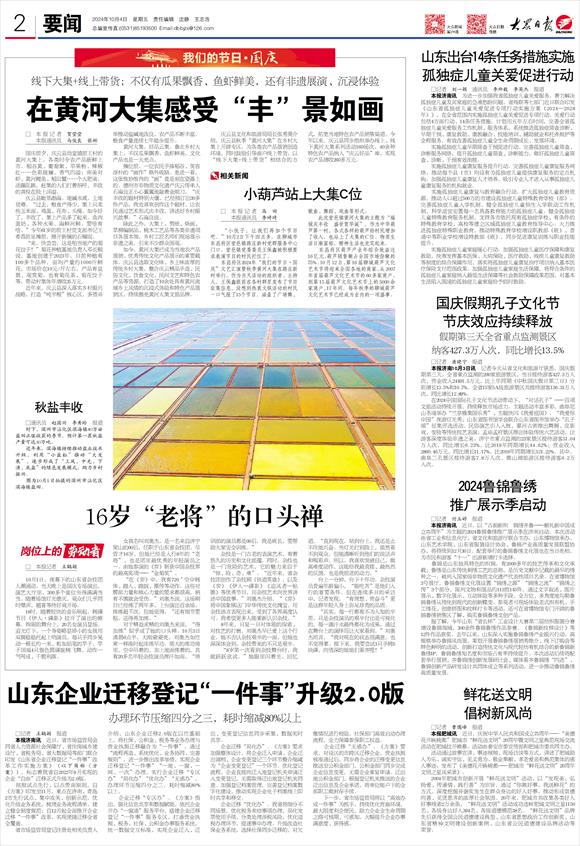 如今,黄河大集已成为当地农产品展销、优秀传统文化产品展示的重要载体。庆云县选取文化味、乡土味浓厚的传统乡村大集,整合庆云精品手造、民俗文化、饮食文化、民间文艺和特色农产品等资源,打造了10余处具有黄河流域乡土风情的沉浸式体验和特色产品展销区,持续擦亮黄河大集文旅品牌。