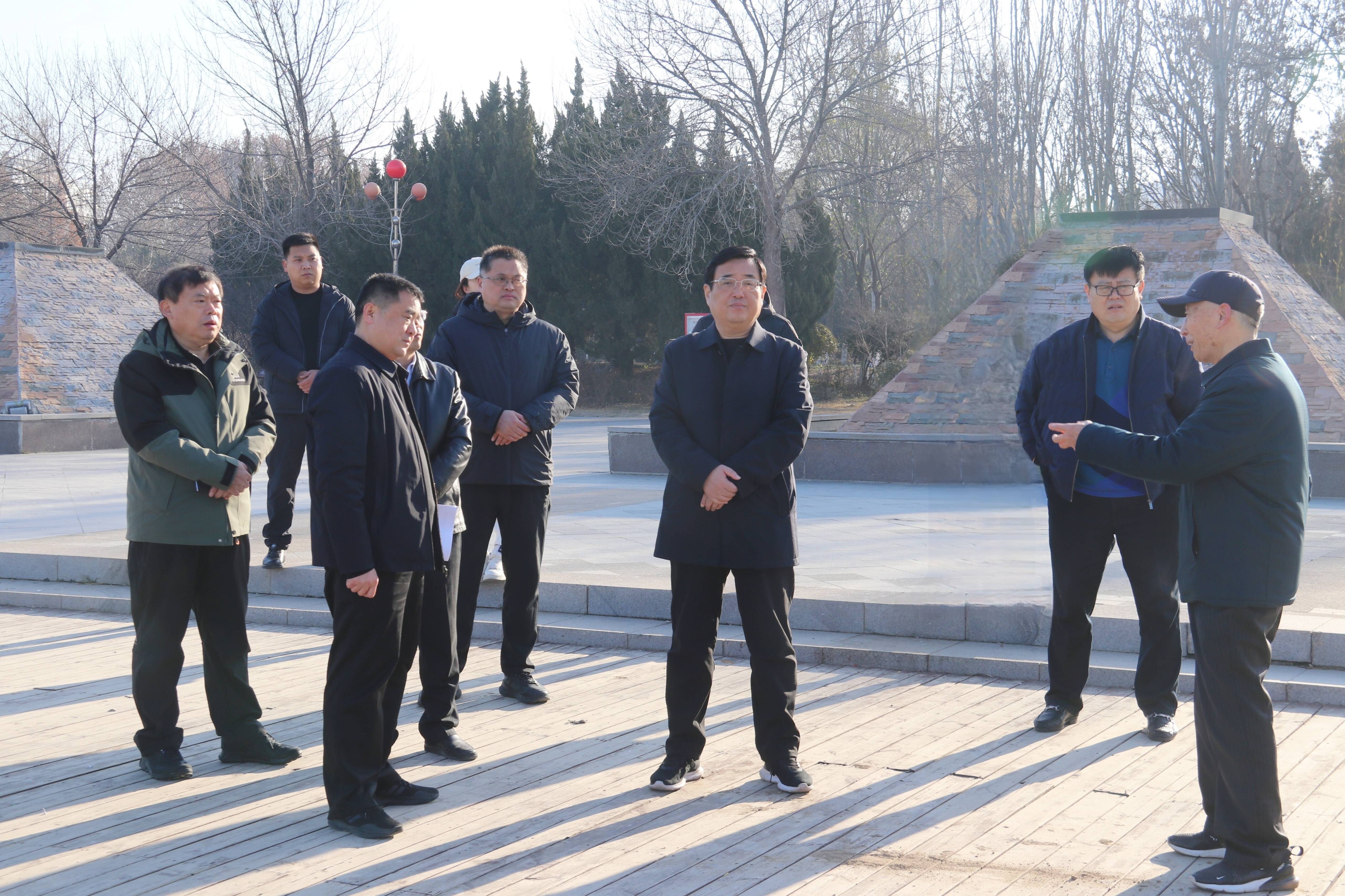 耿振华一行先后到幵山公园、谢集镇史园村烈士陵园、郭村镇葛庙村周家祠堂、高韦庄镇黄河故道水库进行实地调研,并听取了相关工作介绍。