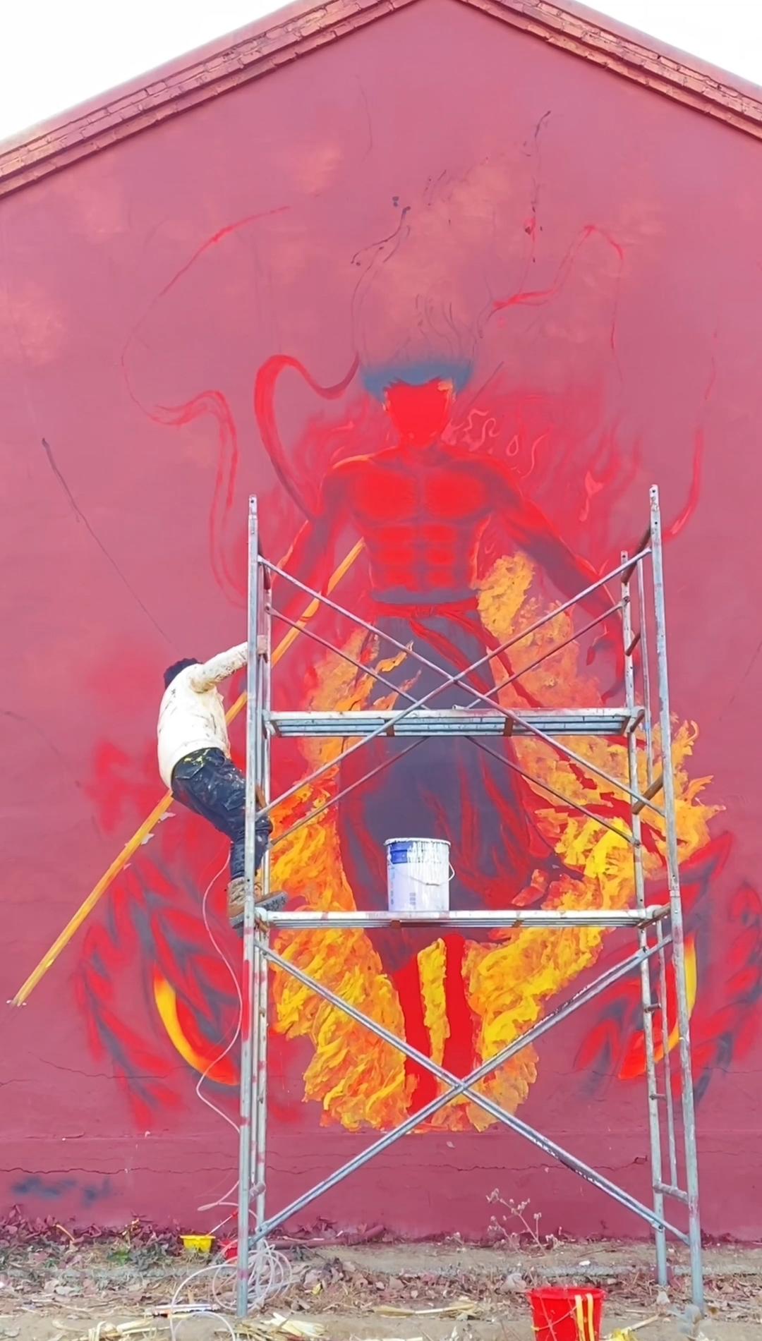 这个“哪吒”是如何制作的?墙绘的背后又有着怎样的故事?