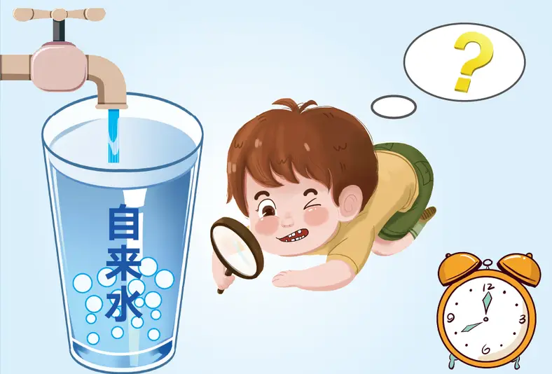 水中有微生物,加氯消毒,氯味不影响饮用。