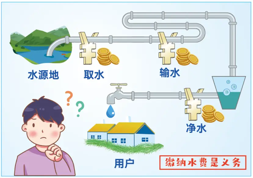 大自然的水源水,通过自来水厂集中净化、消毒后,再由水管送到居民家中的水。只要打开水龙头,水就自然出来了,所以叫自来水。