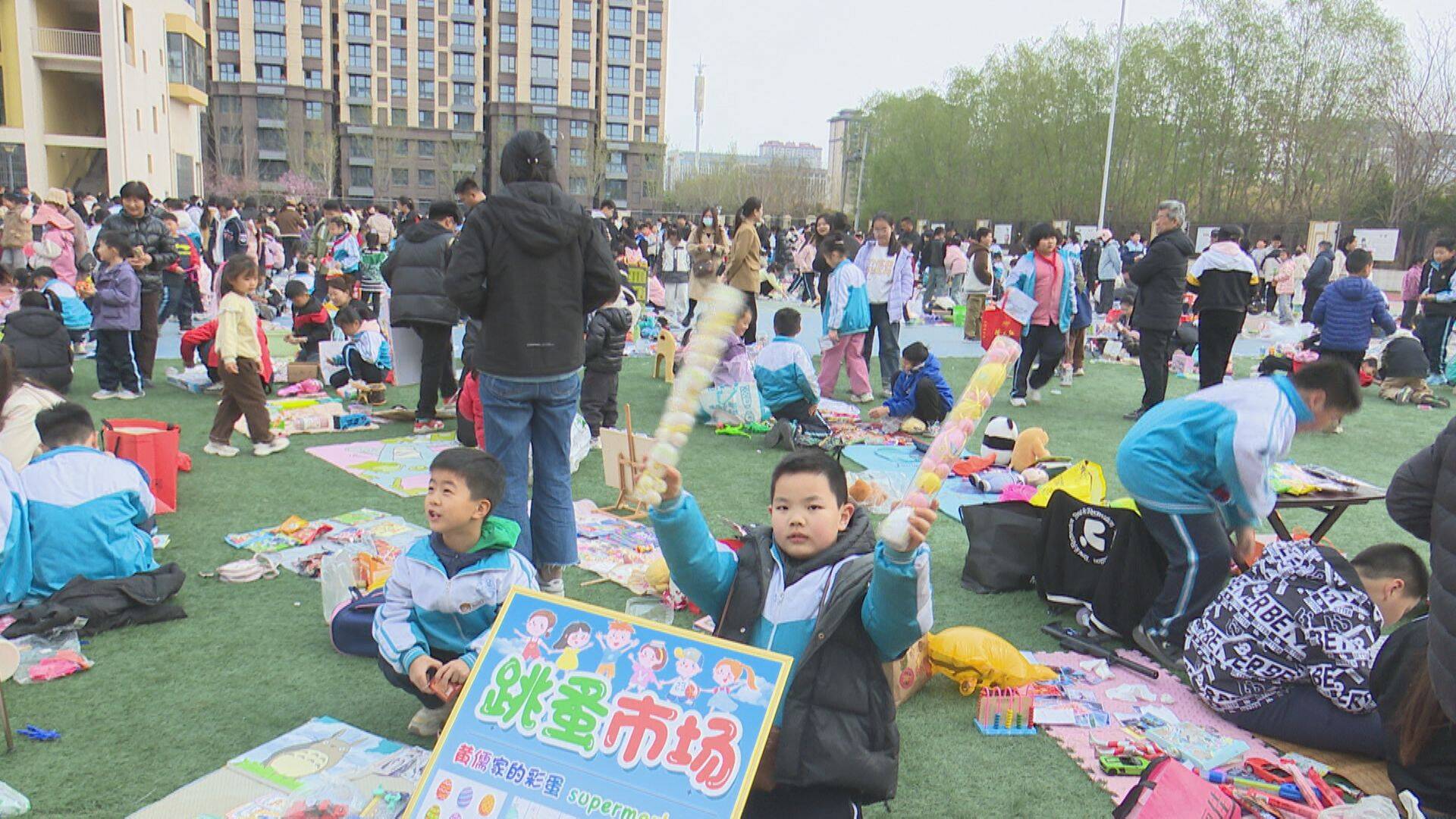 操场上人头攒动、热闹非凡, 买卖声不绝于耳, 孩子们沉浸在一片热闹的海洋中, 整个校园操场俨然成了一个火爆的交易市场。据悉,此次活动旨在培养学生的理财观念,提升学生的社交能力,增强自信心和成就感,丰富校园生活体验。