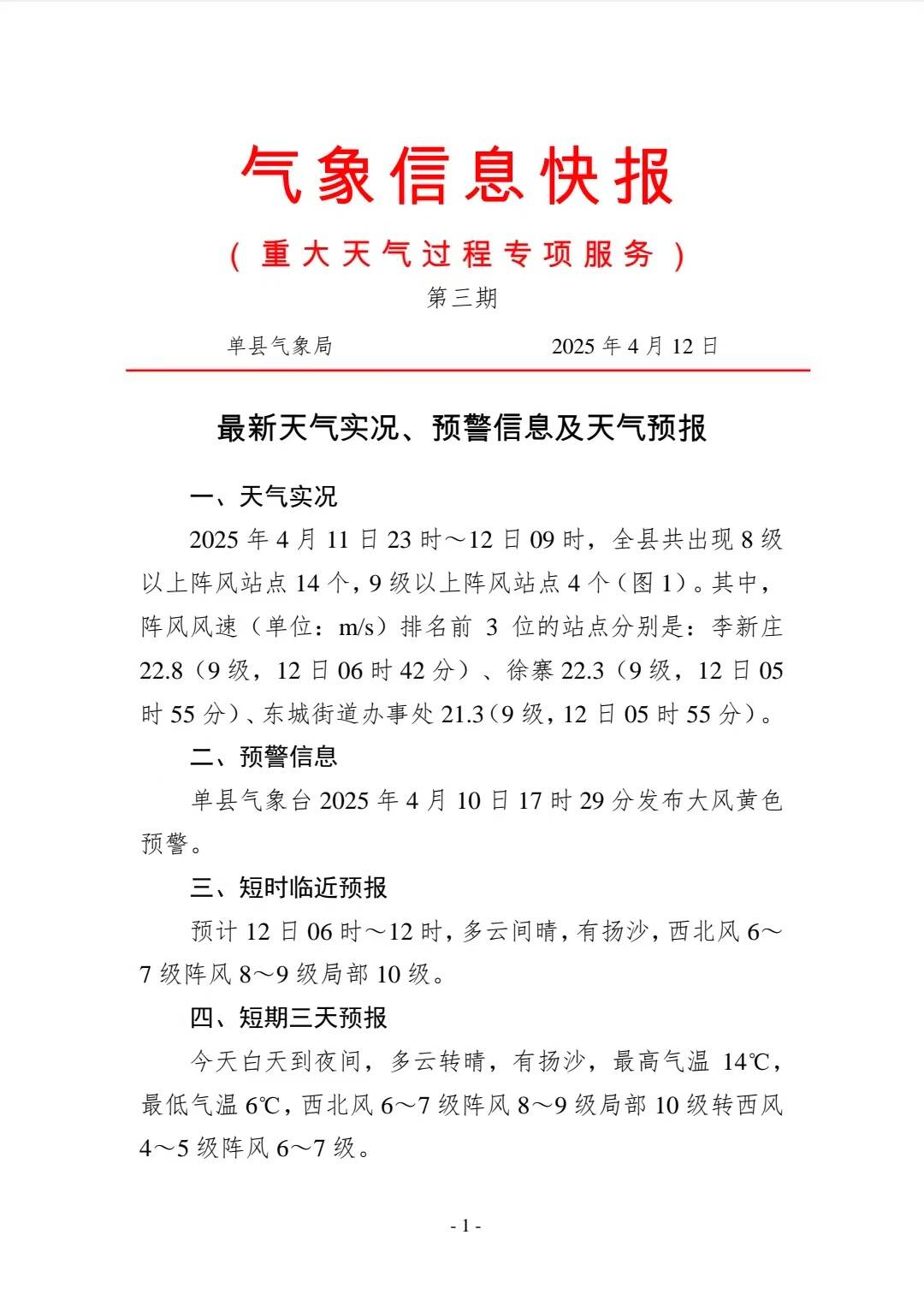 单县气象局 2025年4月12日最新天气实况、预警信息及天气预报