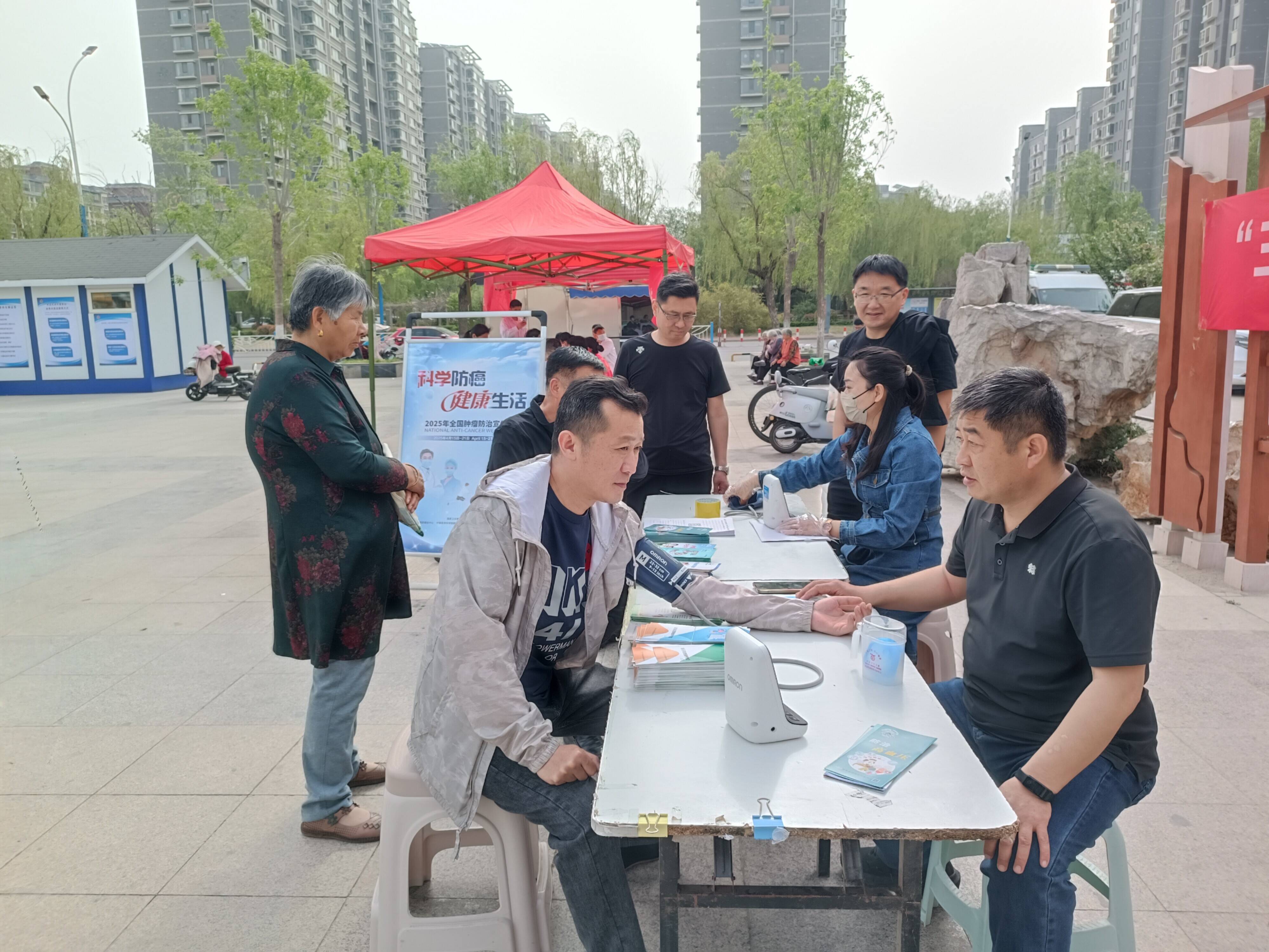 活动现场,通过发放健康知识宣传折页、摆放宣传展板、悬挂横幅等形式,为居民普及肿瘤防治基本知识,倡导居民远离烟草,提倡健康饮食、作息规律、合理运动等健康生活方式。同时,医务人员免费为居民量血压、测血糖,解答群众咨询。
