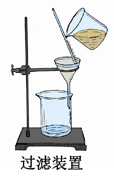 过滤也可以除去水中难溶性固体杂质,自来水厂一般以石英砂等有空隙的粒状材料截留水中悬浮颗粒。在化学实验室中通常同定性滤纸除去水中的难溶性固体杂质。定性滤纸由棉质纤维制成,它的表面有无数小孔(通常中速定心滤纸的孔径为30~50微米)可供液体通过,而体积较大的固体颗粒则不能通过从而可以实现液态及固态物质分离。其实,过滤的原理经常用在我们的生活中。例如,漏勺、茶漏、下水道上面的箅子等等。