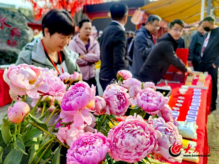 活动现场,牡丹木雕、牡丹瓷、牡丹鲁锦、牡丹合香、牡丹花蕊茶、牡丹面膜等一批产品各具特色,吸引着游客细细欣赏。品一杯香醇的牡丹花茶,让牡丹的芬芳在舌尖萦绕;跟着非遗从业者现场体验传统手工技艺制作文创产品,切实感受传统文化的深厚底蕴与牡丹文创的独特魅力。游客们现场聆听了牡丹园艺师对牡丹芍药品种习性的讲解,了解到牡丹芍药的培育奥秘,感受其特有的文化魅力。一株株反季节催花牡丹、催花芍药盛开正艳,或娇羞含苞,或热烈绽放,如梦似幻,吸引着大家纷纷拍照。