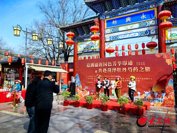 当日,菏泽市牡丹区组织的“追溯盛唐国色芳华印迹 共赴菏泽牡丹芍药之旅”首场宣传推介活动在永兴坊景区举办。该活动由中共菏泽市牡丹区委、菏泽市牡丹区人民政府主办,中共菏泽市牡丹区委宣传部、牡丹区文化和旅游局、牡丹区牡丹花卉产业发展中心、菏泽正邦控股集团有限公司、菏泽尧舜牡丹生物科技有限公司、永兴坊景区等联合承办,当地相关部门以及陕西省山东菏泽商会等负责人出席活动。