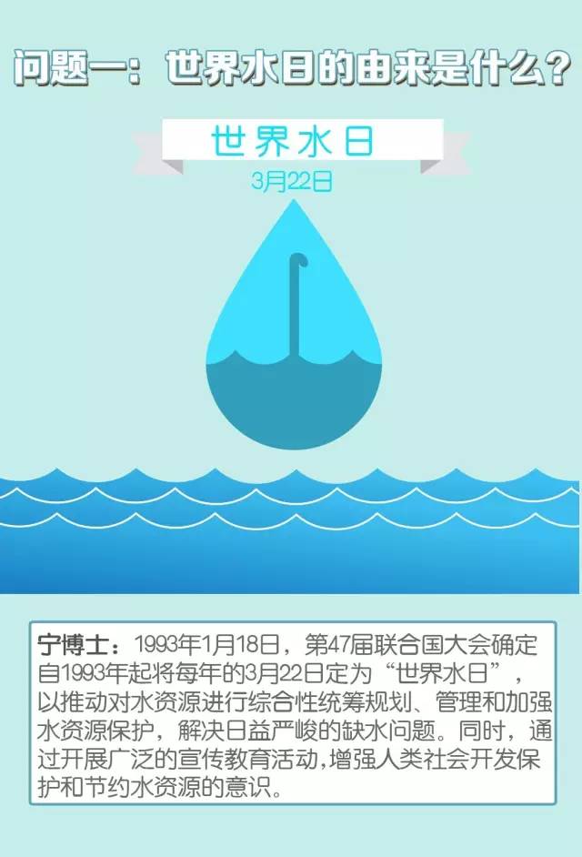 水是一切生命赖以生存,社会经济发展不可缺少和不可替代的重要自然资源和环境要素。为应对日益严重的全球性水危机,联合国大会将每年的3月22日定为“世界水日”,旨在唤起公众的节水意识,加强水资源保护。为庆祝本次节日的到来,南京市科协科普信息化传播控制中心特邀南京水务学会为大家制作了10个科普小问答。