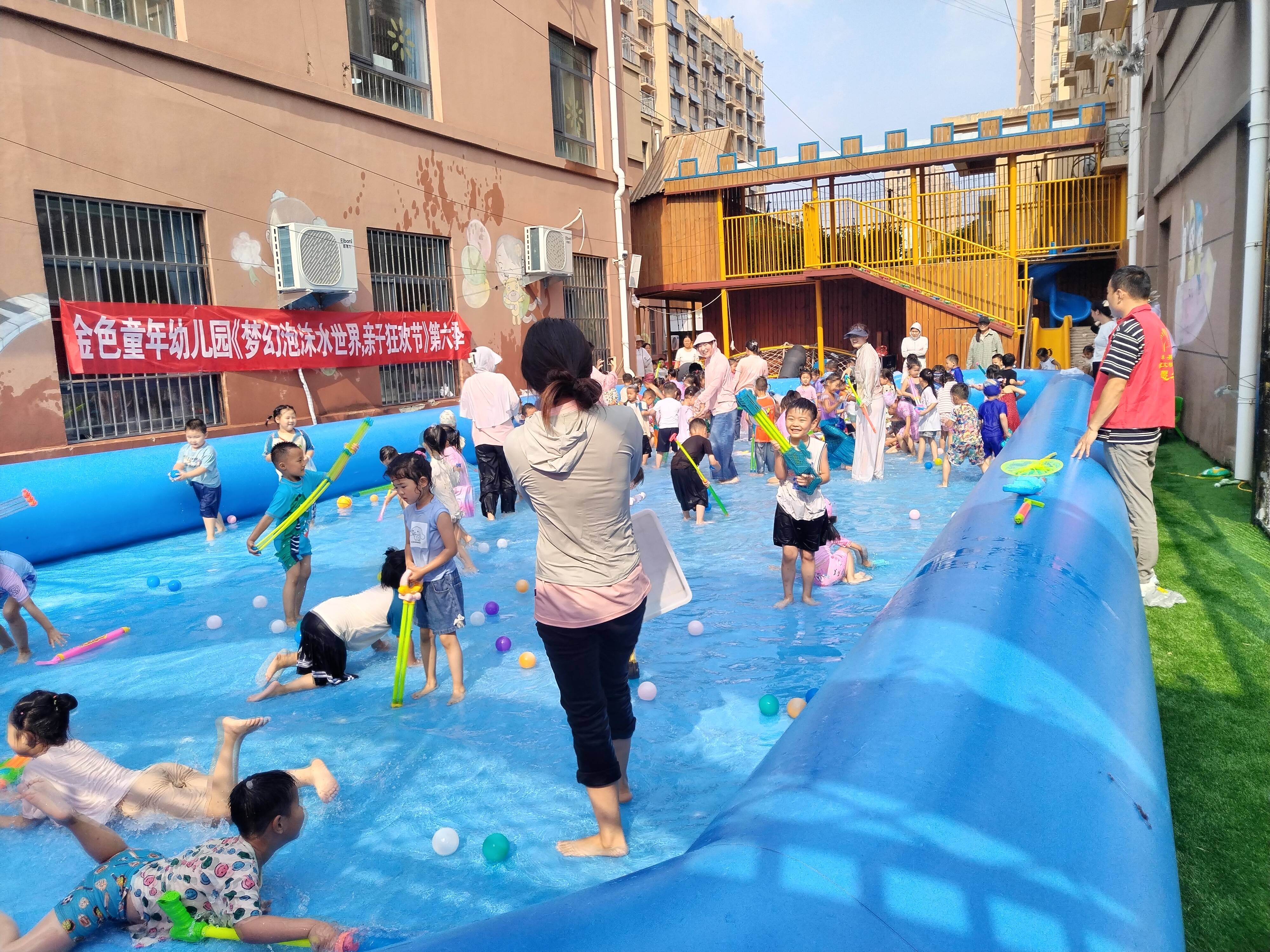 随着欢快的音乐响起,幼儿园操场变身“水上乐园”。家长与孩子们一起在水中舒展身体,共同完成趣味热身操,欢声笑语中传递着默契。随后,孩子们在水池中追逐、跳跃,尽情感受水的清凉与游戏的纯粹快乐。家长们也抛开工作疲惫,重拾童心,与孩子展开水球大战、合作通关,亲密无间。现场水花四溅,银铃般的笑声与灿烂的笑容交织,描绘出夏日最动人的画卷。“你陪我长大,我陪你变老”——这场亲水互动不仅是身体的清凉,更是情感的深度交融。
