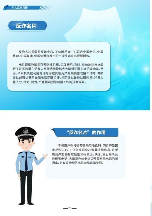 近日,公安部刑侦局最新发布《2025版防范电信网络诈骗宣传手册》,其中介绍了防范电信网络诈骗的八大反诈利器,具体如下: