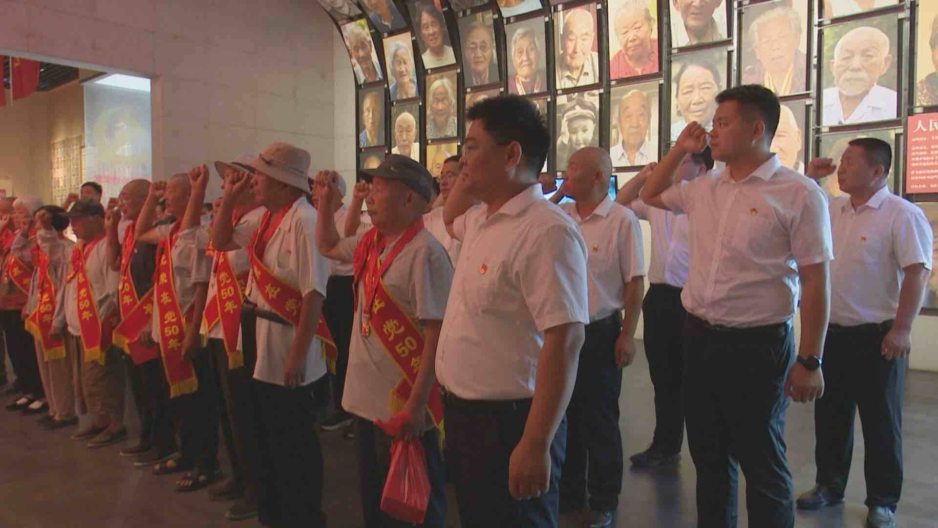 仪式在雄壮的国歌声中拉开帷幕,镇领导分别为“光荣在党50年”的14名老党员代表颁发纪念章。仪式结束后,镇党委领导到建国前老党员刘保珠家中慰问。随后,陪同老党员代表一同前往单县新时代文明实践中心红色湖西教育基地参观学习并重温入党誓词。