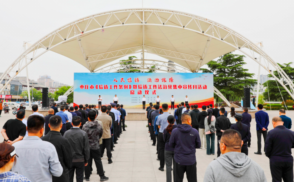 枣庄市、各区(市)、各镇街三级同步启动,信访、司法、公安、法院、市场监管等单位现场设置宣传站点32处,通过布设展板、悬挂横幅、发放资料、讲解答疑等形式开展现场宣传;各镇街扎制宣传车辆、播放讲解音频开展流动宣传。