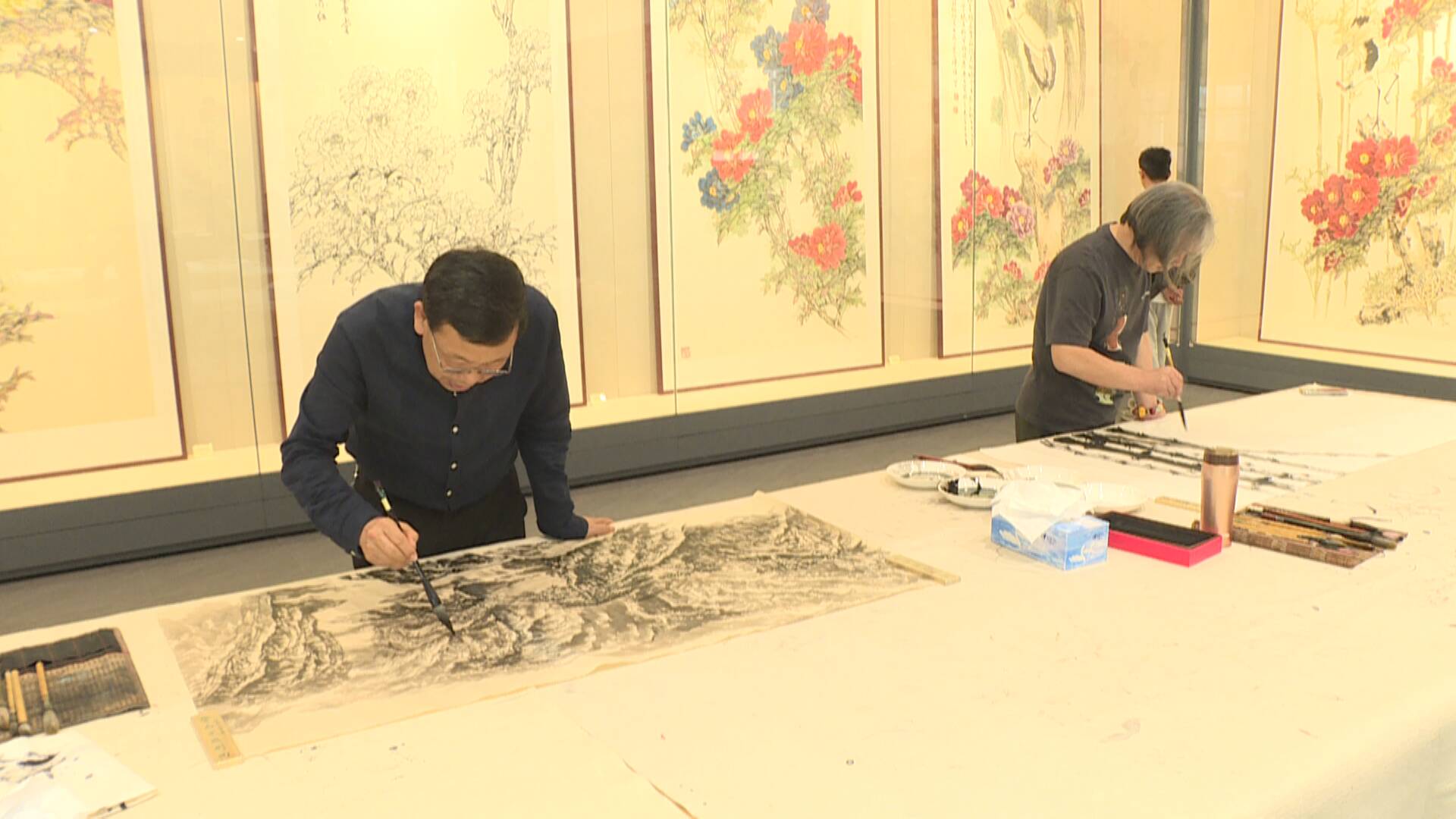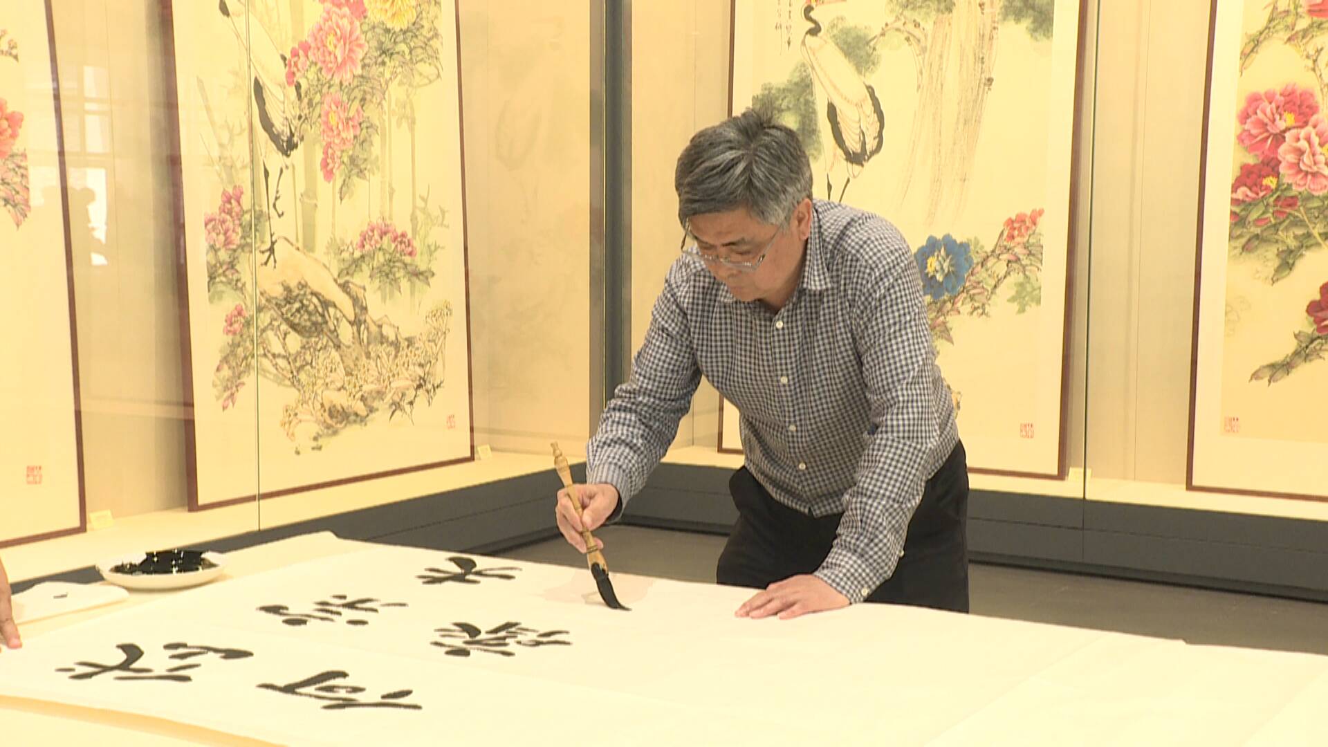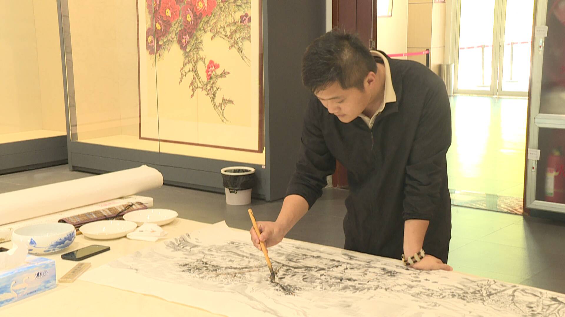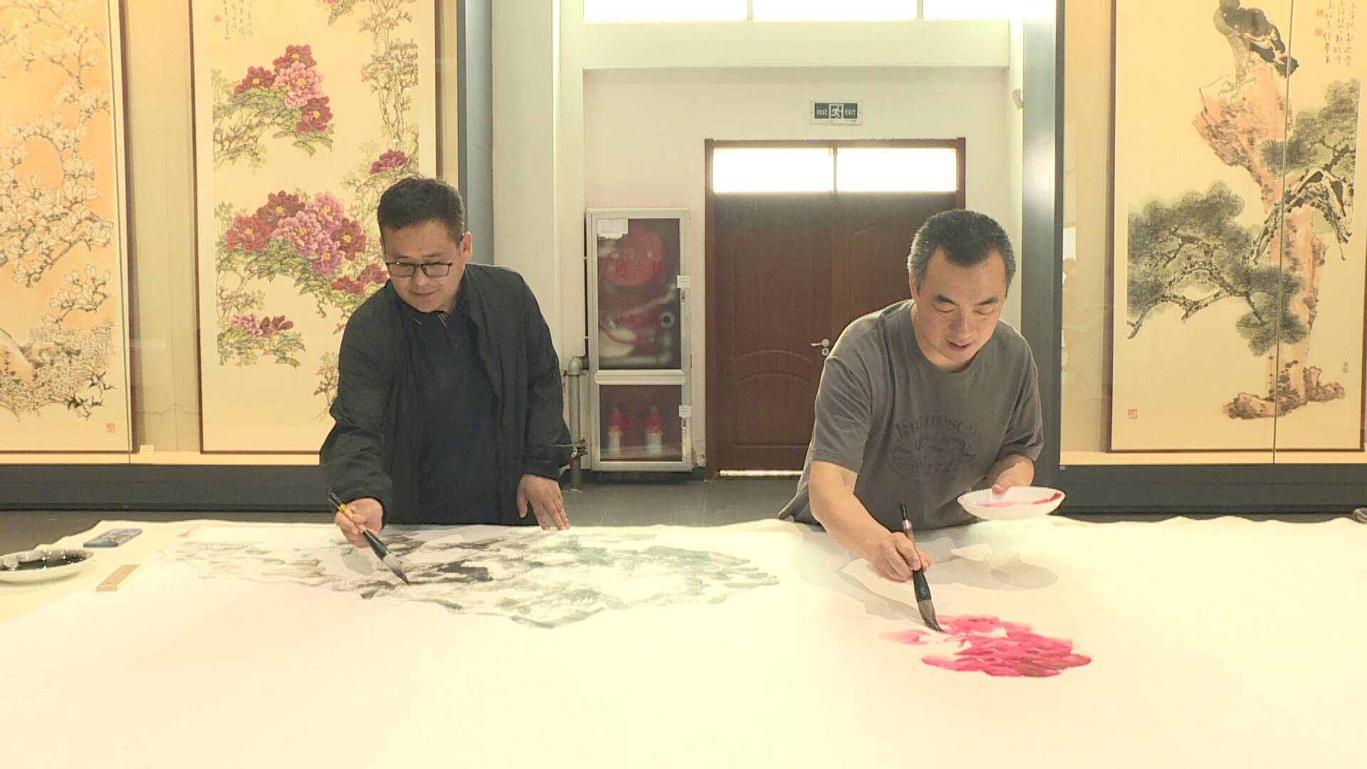 在美术馆中,李荣海等多位艺术家挥毫泼墨,用饱满的创作激情讴歌新时代。他们或描绘牡丹雍容华贵的盛世气象,或抒写山河壮美的时代新貌,创作了丈二匹国画《花开盛世》《万紫千红》和丈二匹书法等一批精美书画作品,为单县留下了精品力作。