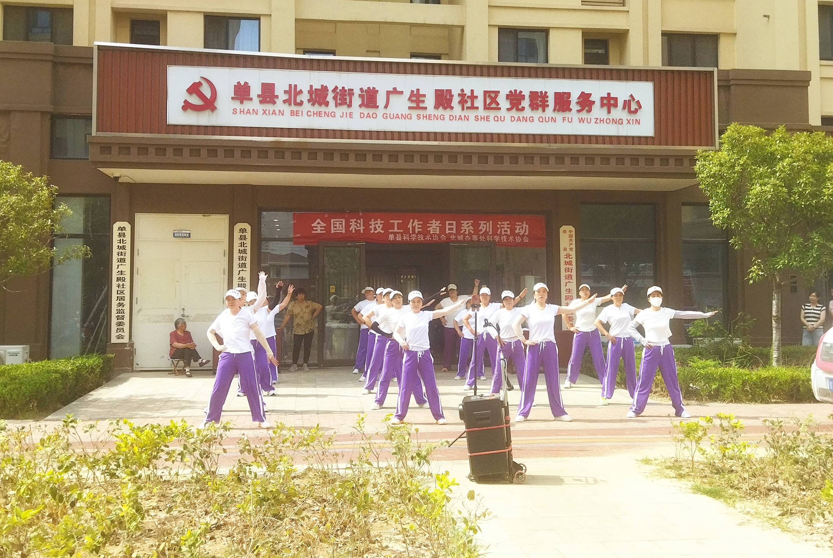 在义诊和科普活动间隙,广生殿社区的文艺爱好者们带来了精彩的广场舞表演。伴随着欢快的音乐,用充满活力的舞姿展现了积极向上的精神风貌和对健康生活的追求。精彩的表演吸引了众多居民驻足观看,不仅活跃了现场气氛,更生动诠释了“健康生活、快乐生活”的理念,为科技惠民活动增添了别样的风采和温度。