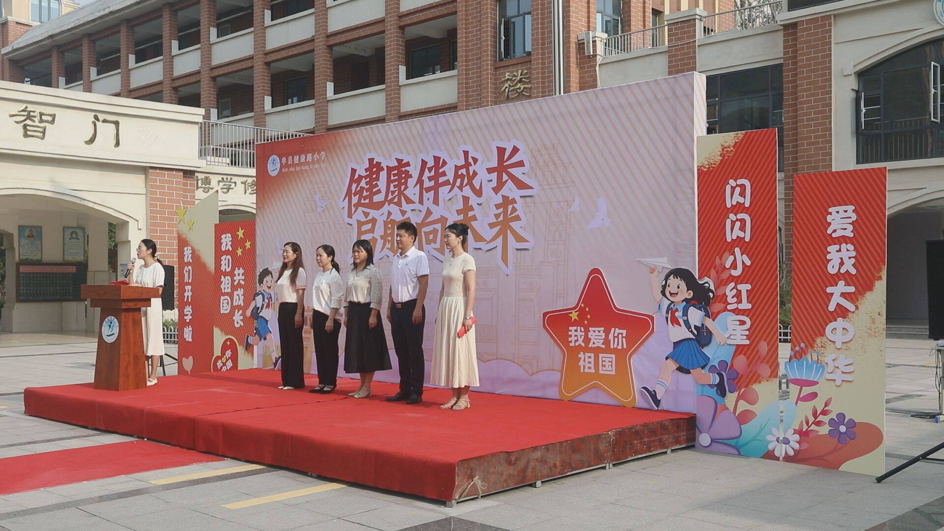 单县健康路小学副校长 张晨:我校给一年级小朋友们打造了一个充满爱国主义氛围的开学典礼,我们围绕着我校校训“做好人、读好书、健好身”,精心设计了“我是中国人”“万里长征我能行”“为中华之崛起而读书”三个入学小闯关;希望能以这种方式给孩子们呈现一堂别具意义的爱国第一课,将爱党、爱国情怀厚植于孩子们内心。今后,我校也会以此为目标,全力营造优良的教育环境,与家长、社会携手,共同守护孩子们的未来,培育时代需要的栋梁之才。