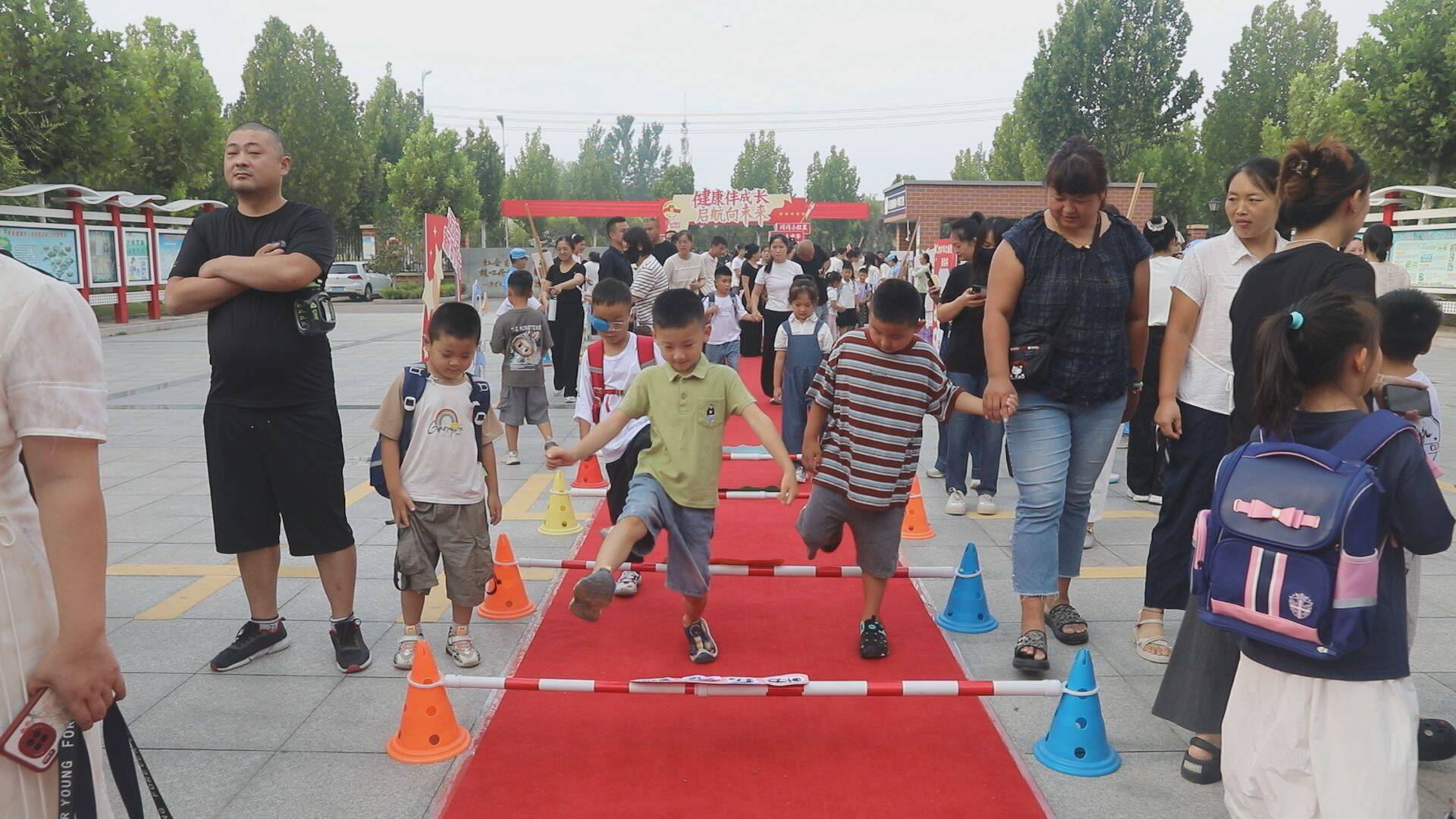 清晨的阳光洒满校园,孩子们在家长的带领下意气风发,陆续走进校园。他们依次穿过写着“健康伴成长 启航向未来”的成长之门,打卡充满仪式感的“我是中国人”“万里长征我能行”“为中华之崛起而读书”三个小闯关,在孩子们心中播下“爱党、爱国”的种子,期许他们在新环境中收获知识与友谊,快乐成长。