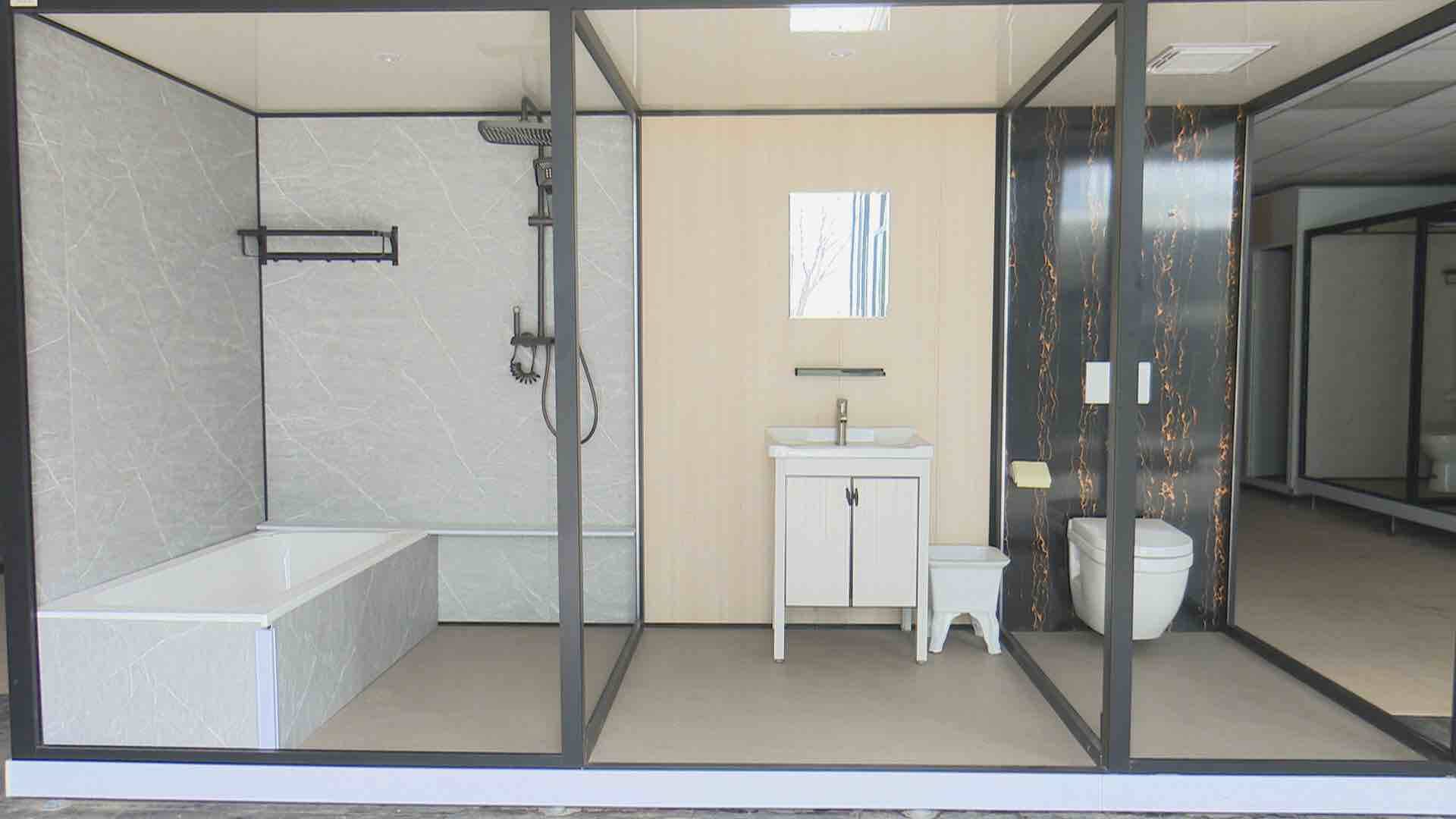 山东冬日如春家居股份有限公司总经理 刘涛:我公司研发生产销售模块化整体卫生间和模块化房屋,在材料集成上做了大量创新和积累,材料和工艺都是专用的,把内外装饰、保温隔音集成一体,保证了质量、效果和环保性,大幅度降低了施工费用。
