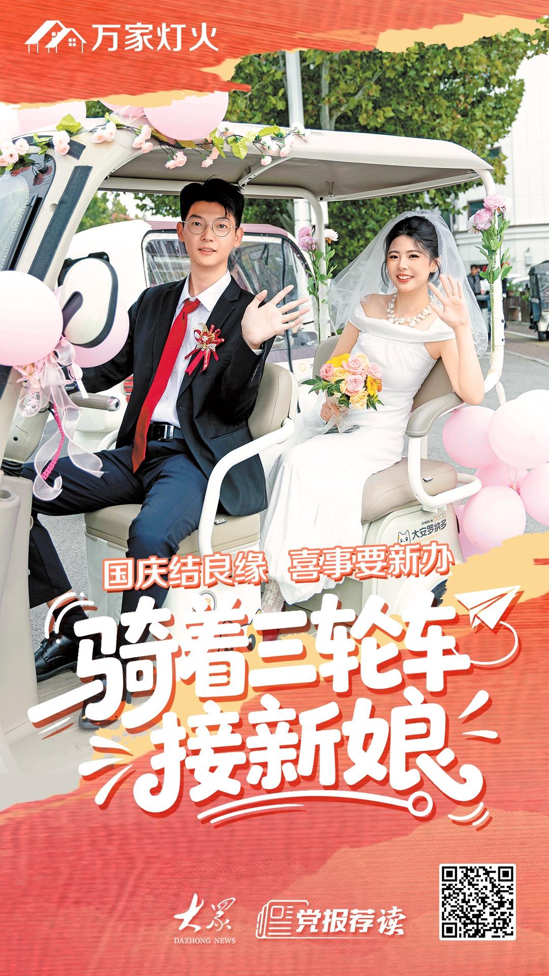 正好李秀霞的同事黄超凡新买了一辆电动三轮车,李秀霞便借了过来。黄超凡说:“这种接亲方式经济环保又时尚。”