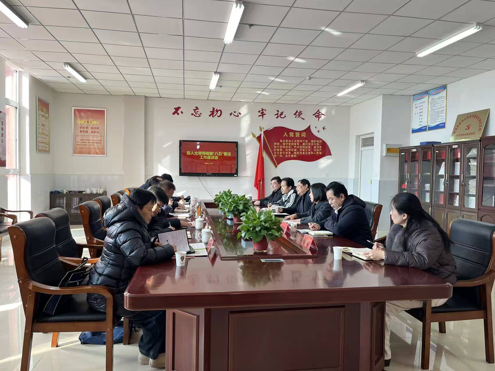 启动仪式后,县人大常委会组织部分人大代表组成视察组,同步开展“八五”普法工作专项视察,以“实地查看+座谈评议”方式,重点检查普法规划落实、重点人群学法、法治阵地建设等核心内容。视察组先后查看了县供电公司、南城七里庄社区和希望学校,并听取了县法院、县检察院、希望学校关于“八五”普法工作情况汇报。