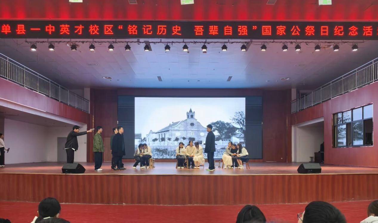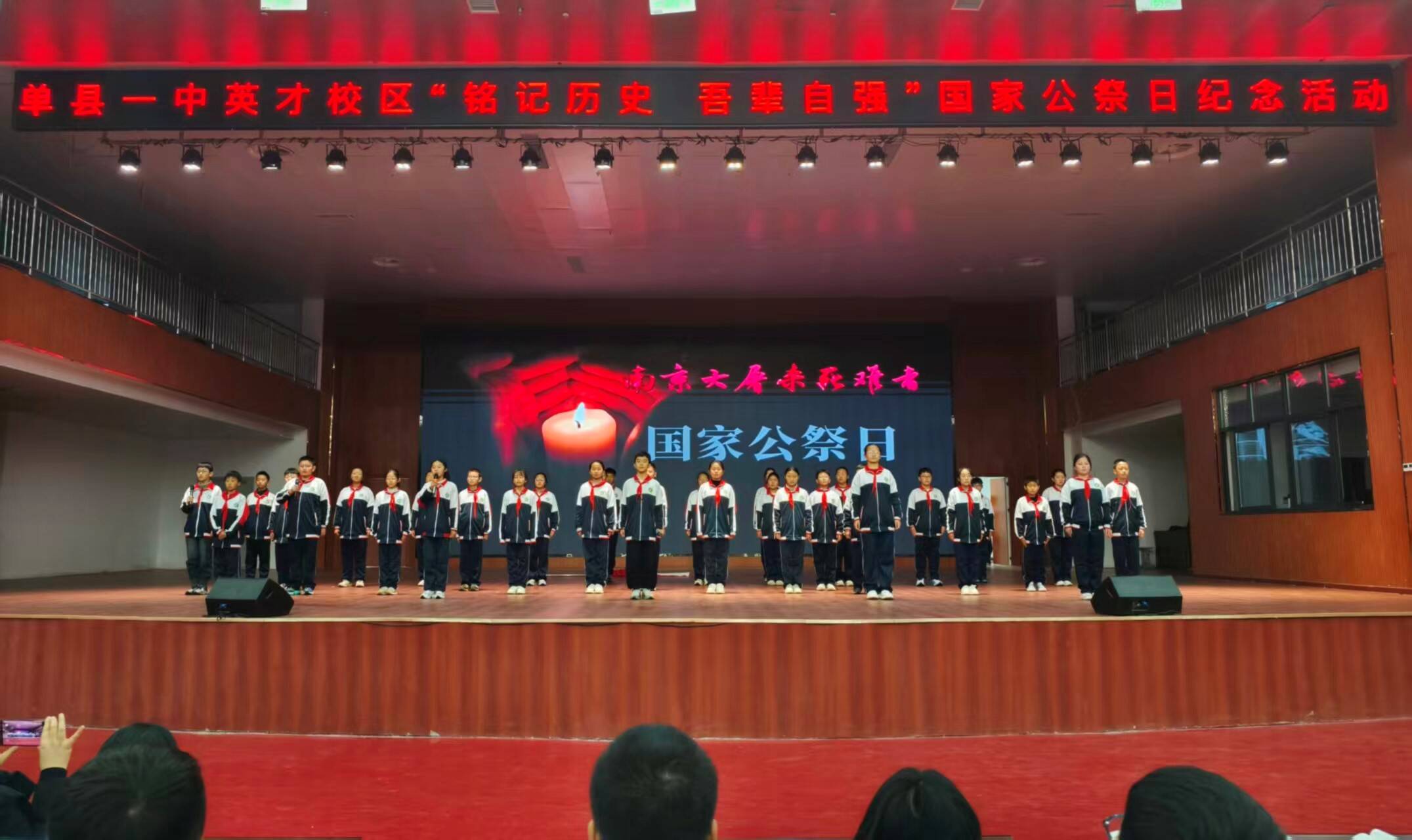 为深切缅怀南京大屠杀死难者及所有惨遭日本侵略者杀戮的同胞,引导学生铭记历史、珍爱和平、勇担使命,12月12日,单县一中英才校区初中部组织六、七年级全体学生,在学校报告厅举办“铭记历史,吾辈自强”主题国家公祭日纪念活动。