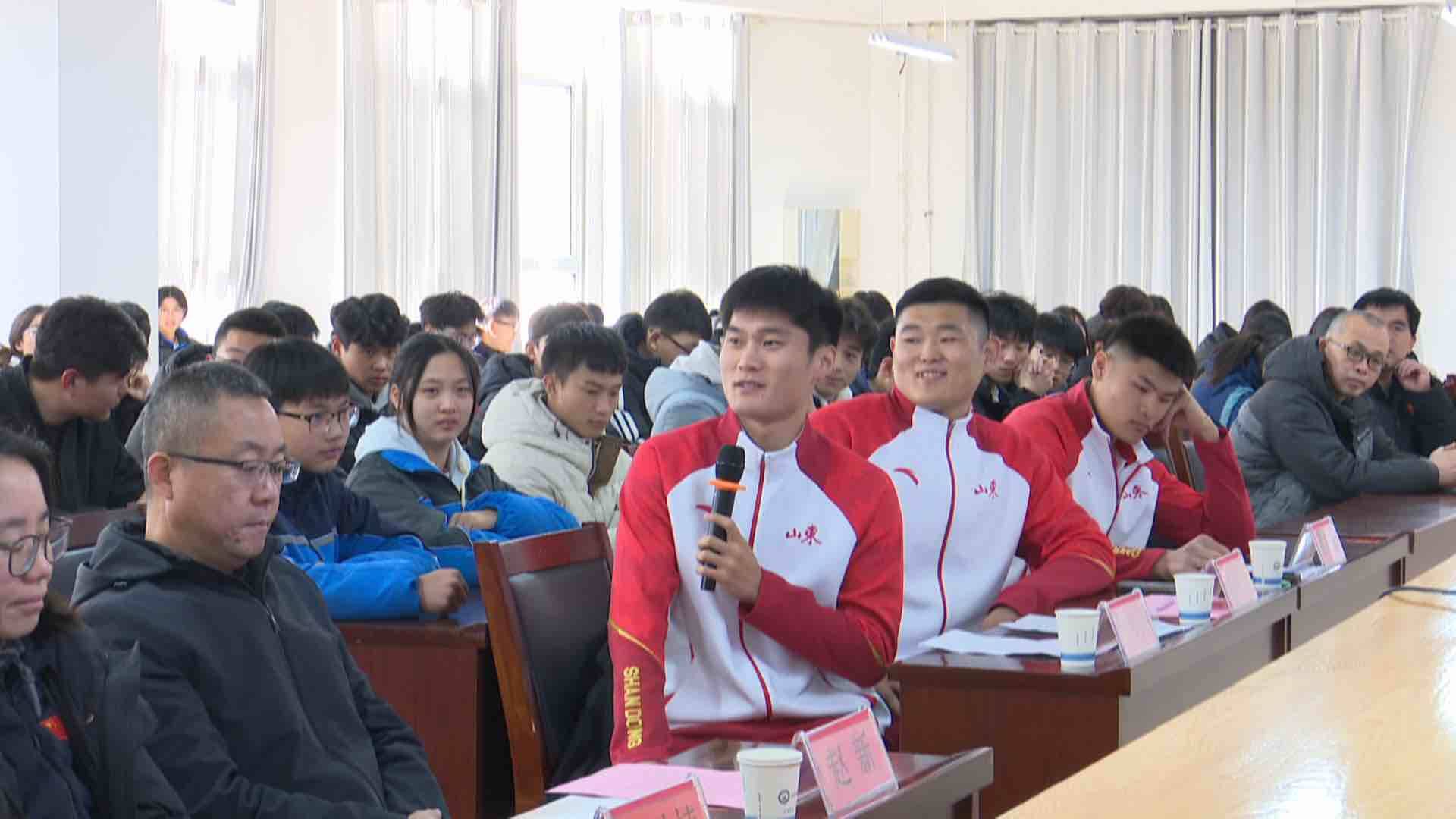 活动中,足球运动员贾伟伟、散打运动员唐怀安、翟辰溪三名运动员分别分享了自己的奋斗经历,与学生们进行了面对面交流,鼓励学生们在面对困难时,要有永不言弃的体育精神。