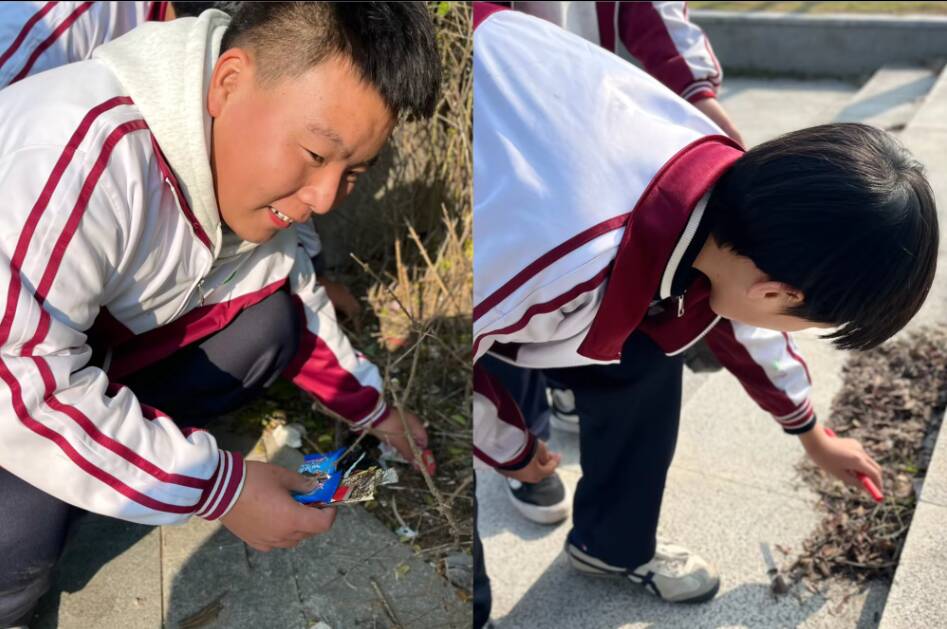抵达甜湖公园后,同学们迅速投入环保劳动,分区域开展清理工作。草坪中、步道旁、花坛边,处处是他们忙碌的身影。大家分工协作,有的细致捡拾隐匿烟头,有的合力归类垃圾并妥善装袋。同学们专注而认真,每一次俯身拾捡,都是对公共环境的切实守护,也是对绿色家园理念的生动诠释。活动尾声,甜湖公园的环境面貌得到显著改善,同学们也在劳动中体会到奉献的快乐与成就感。