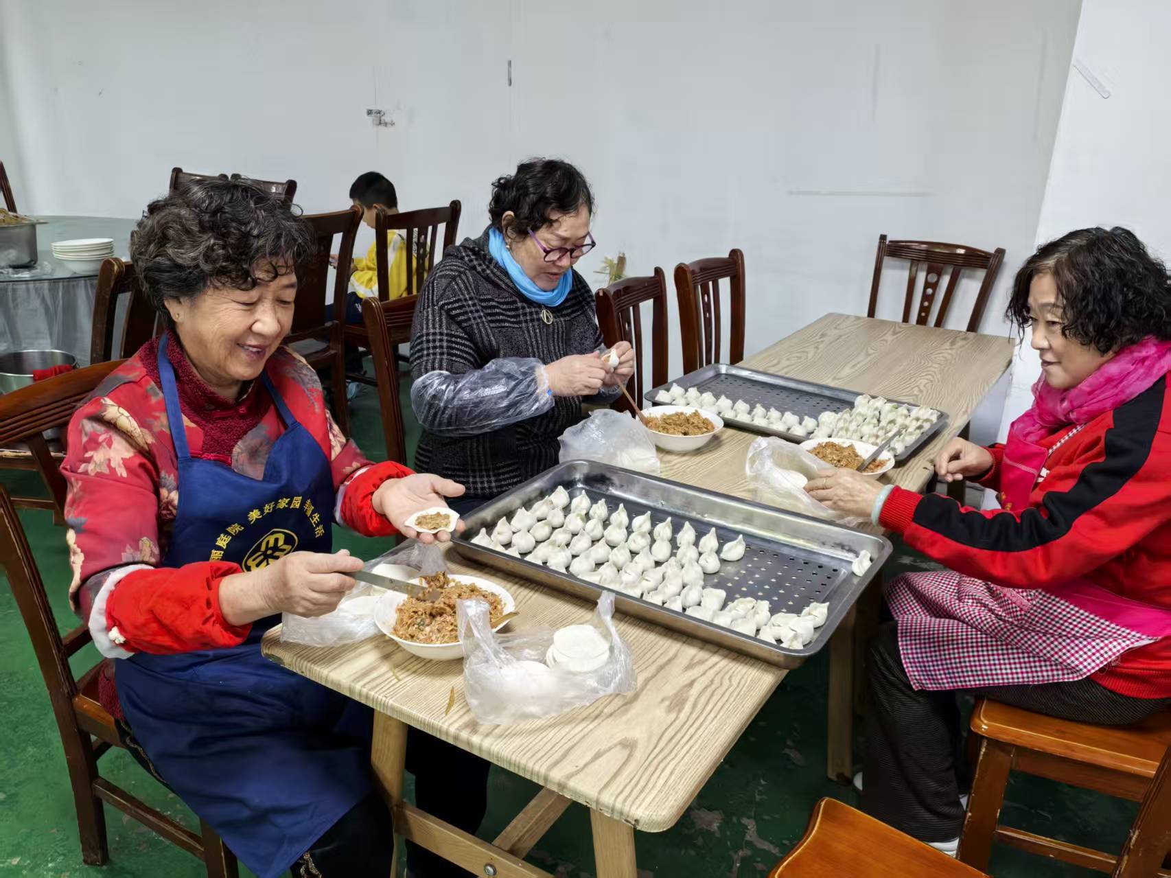 文艺汇演结束后,志愿者们开始为老人们包饺子。大家分工协作,和面、擀皮、调馅、包捏,动作娴熟,配合默契。在一片欢声笑语中,一盘盘形状美观、饱满诱人的饺子很快便摆满了桌面。志愿者们一边包饺子,一边与老人们唠家常,关切地询问他们的身体和生活状况,叮嘱他们天气转凉要注意保暖。小小的饺子,包进去的是爱心,端出来的是温情。