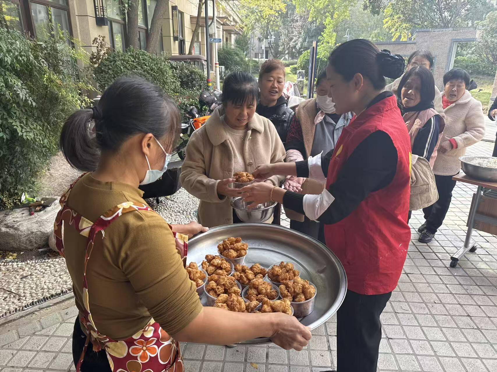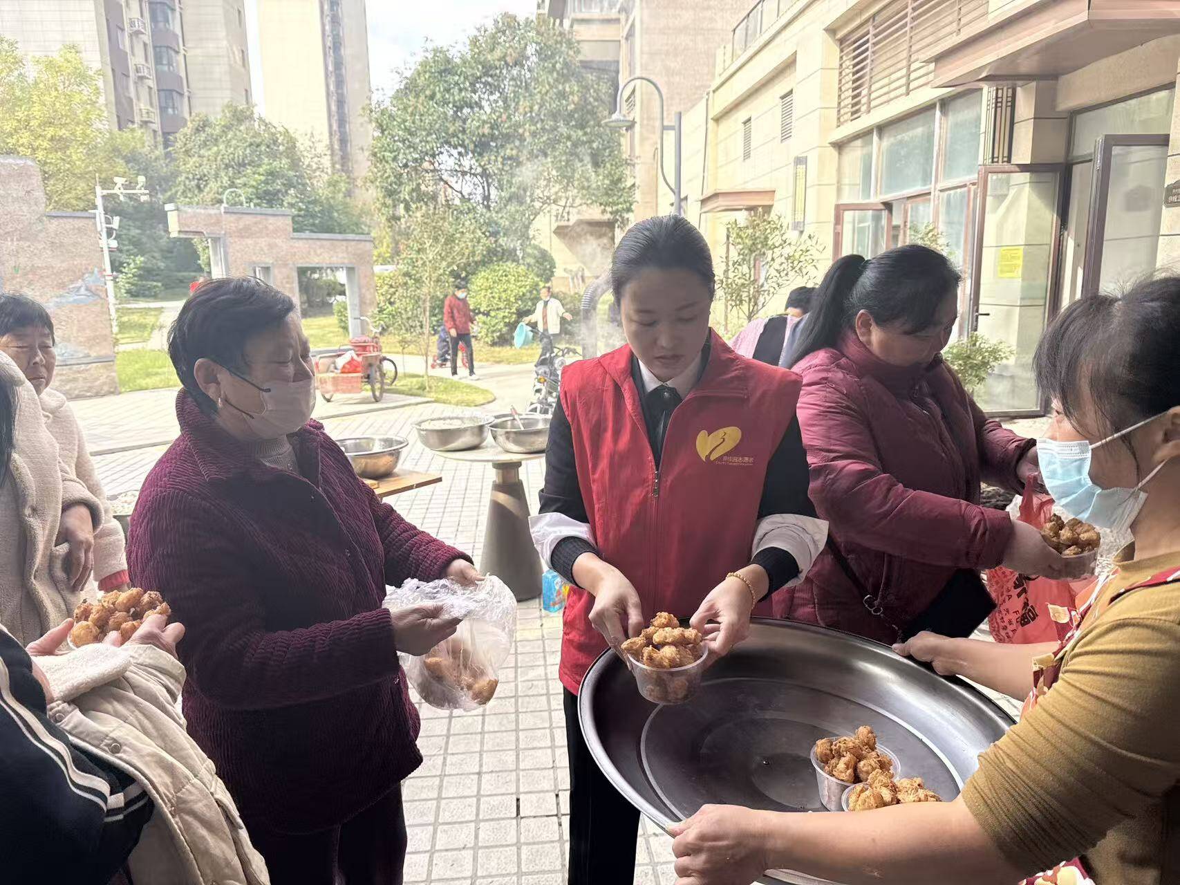 物业工作人员将炸好的丸子细心分装,热情地分发给往来的业主,特别是社区里的老人。每一份热气腾腾的丸子,不仅是一道传统美食,更承载着物业对全体业主,尤其是老年群体的深深敬意与关怀。收到丸子的业主们脸上洋溢着幸福的笑容,纷纷为物业的贴心举措点赞。一位带着孙辈前来参加活动的李阿姨高兴地说:“没想到在自家小区里能感受到这么浓的节日气氛,这丸子炸得又香又脆,心里更是觉得暖乎乎的!物业这次的活动办得太有心了。”