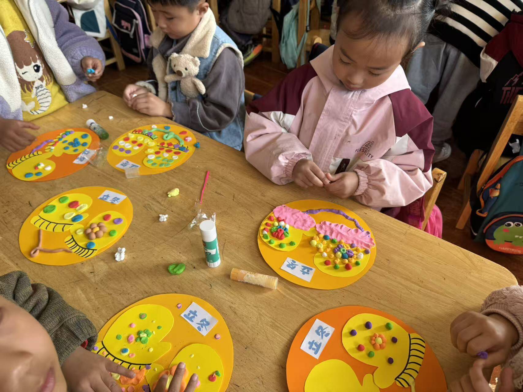 在手工制作环节,孩子们动手实践,用彩泥揉、搓、捏、压,制作出形态生动的“立冬饺子”,在体验传统饮食民俗的同时,也锻炼了动手能力与创造力;大家还发挥想象,设计装饰手工手套,绘制银装素裹的雪景画作,在艺术表达中定格冬日美好,提升审美情趣。