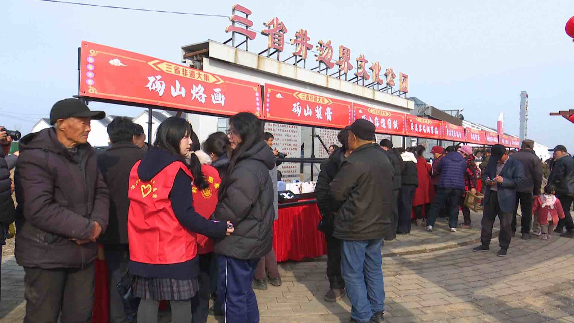 活动会场设在素有“一脚踏三省”之称的苏鲁皖交界的三省井边界文化公园。江苏丰县的虎头鞋、山东单县的浮龙湖草编、安徽砀山的非遗剪纸等具有代表性的非物质文化遗产吸引了众多群众驻足观赏。一件件精美的非遗作品,不仅展现了三省交界地带丰富多彩的文化遗产,更让群众直观感受到中华传统文化的独特魅力与生生不息的活力。