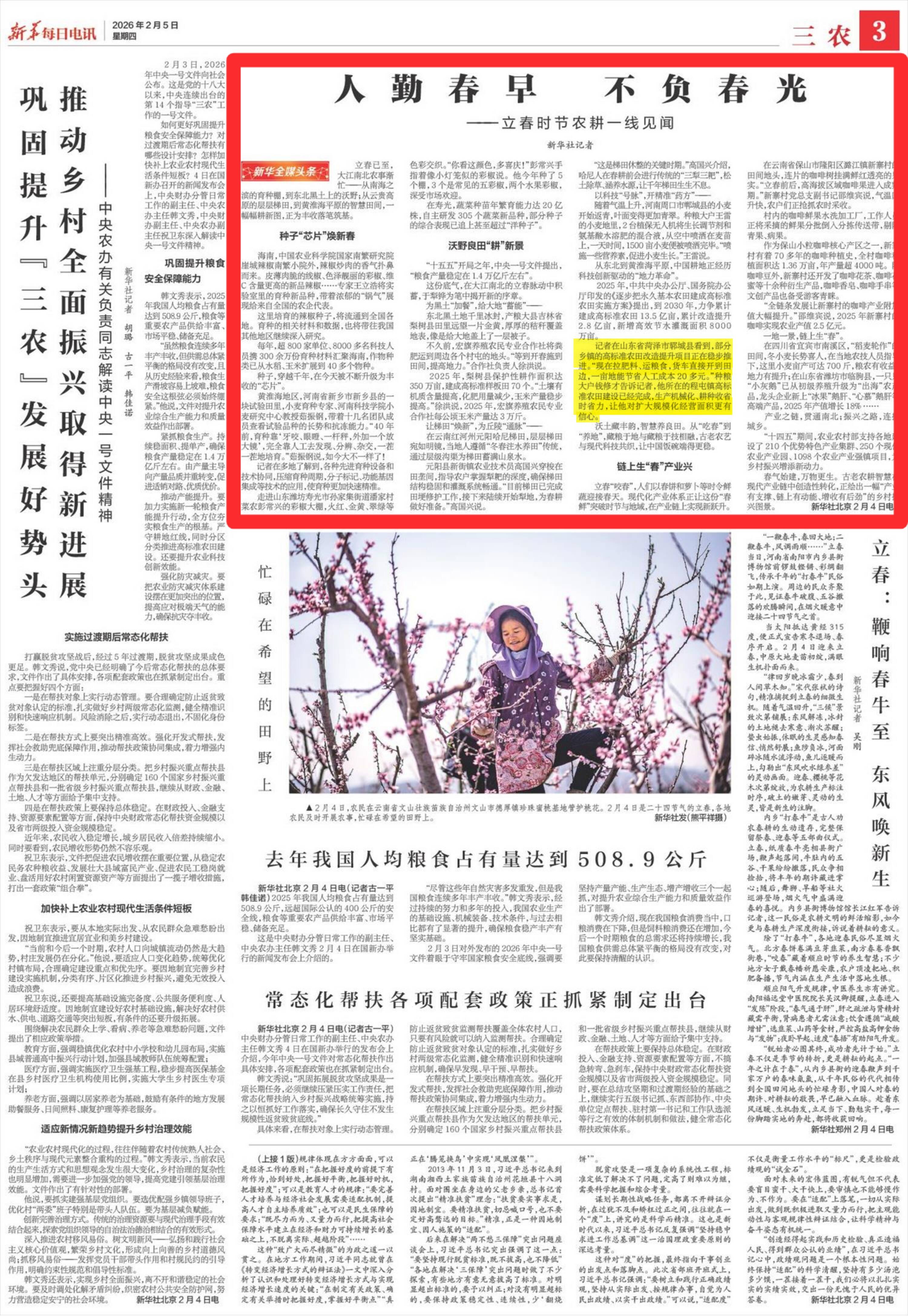 立春已至,大江南北农事渐忙——从南海之滨的育种棚,到东北黑土上的沃野;从云贵高原的层层梯田,到黄淮海平原的智慧田间,一幅幅耕新图,正为丰收落笔筑基。