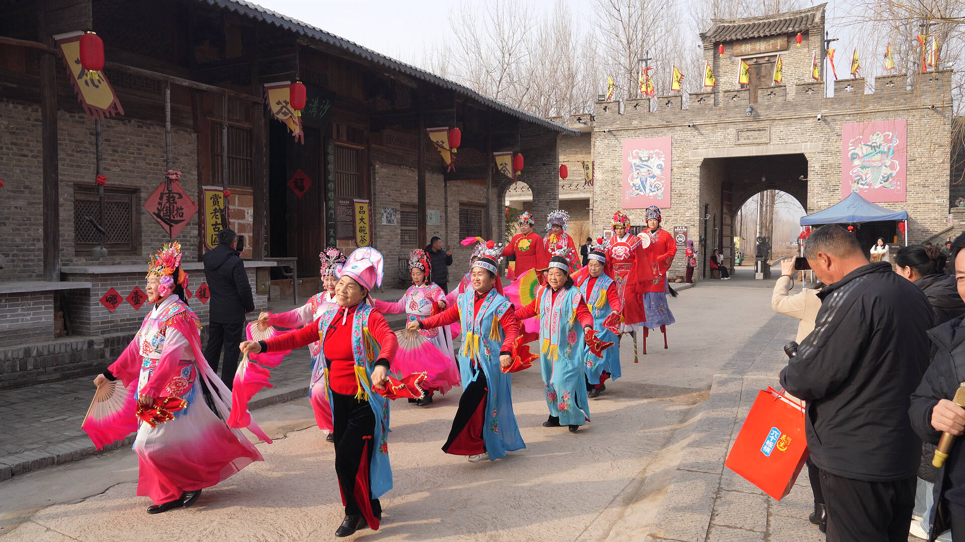 在单县林台民俗文化村,景区精心打造的一台大型民俗文化展演节目群马闹春正在紧锣密鼓的排练中,欢快的节奏、趣味的表演,将氛围感拉满。除此之外,原汁原味的传统古戏台也已建成,春节期间将向游客开放,届时,喜爱民俗和戏曲的游客们可大饱眼福。