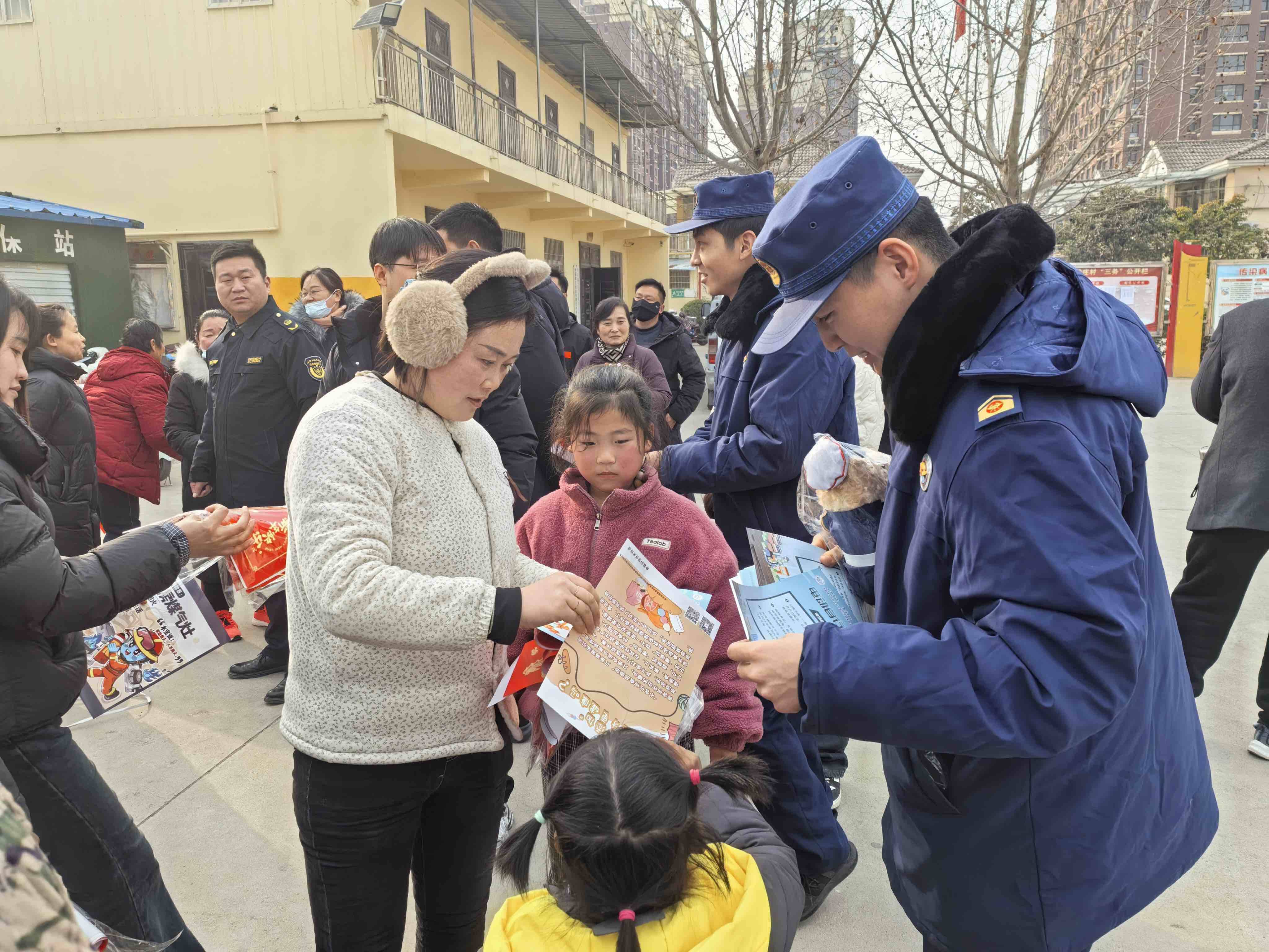 活动采用“集中宣传+敲门入户”形式,在广场向村民发放消防宣传资料、新春对联、福字及消防礼品,现场讲解春节期间用火用电、防火逃生、报警要点等常识。同时,联合队伍走进孤寡老人等重点家庭,排查电气线路、取暖设施等安全隐患,现场指导整改并叮嘱防火事项。