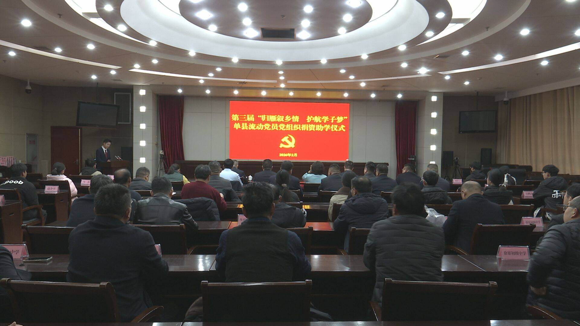为搭建流动党员反哺家乡、回馈家乡的平台,营造重视教育、厚待人才的浓厚氛围,实现流动党员和家乡英才的“双向奔赴”,2月13日,单县举行第三届“归雁叙乡情 护航学子梦”流动党员党组织捐资助学仪式。县委常委、组织部部长路鹤,县人大常委会副主任、县教育和体育局党组书记黄志立,县委组织部、县委教育工委有关负责同志,流动党员党组织负责同志,受资助学生及学校校长参加活动。