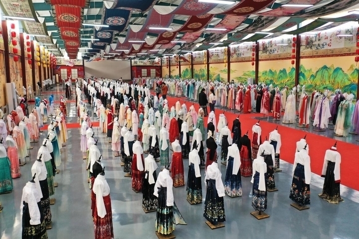 如今,曹县已形成涵盖设计、面料、生产、销售的完整汉服生态,上下游企业超过2700家,5公里范围内即可实现从染色、剪裁到成衣的全流程高效协作。从西安大唐不夜城到洛阳洛邑古城,全国超90%的5A级古风景区内,游客身着的汉服大多产自曹县;与此同时,曹县汉服还走进了全国18所“双一流”高校,通过联名设计等方式,融入当代青年的日常穿着,让传统服饰走出小众圈层、走进大众生活。