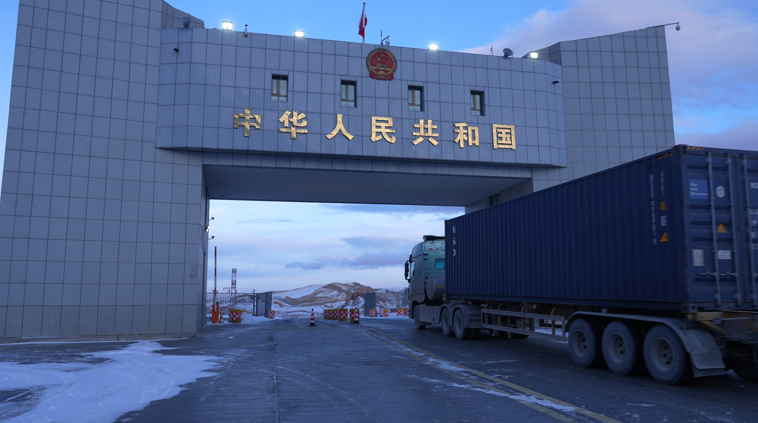 眼前,一道庄严方正的银白国门赫然挺立,过了这道门,便是吉尔吉斯斯坦的地界。在这里,7×14小时均可通关;2025年,有24.51万余次车辆畅行这道大门。