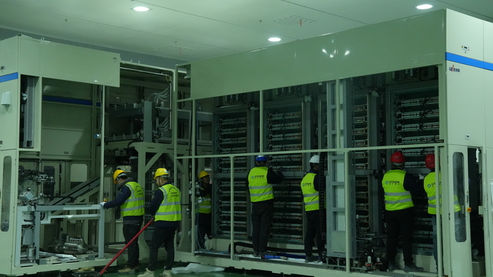 “我们工厂最大的亮点,就是实现了多项行业突破,用技术创新破解行业痛点。”留守现场的项目技术负责人介绍,该项目首次在行业内实现单条生产线产能突破15GWh,通过技术优化,实现每百万千瓦时产能综合投资降低32%、建筑面积降低50%、生产人力降低58%、制造能耗降低13%,单条生产线生产效率较第四代产线提升200%,真正实现了“降本、增效、节能、减碳”的多重目标。