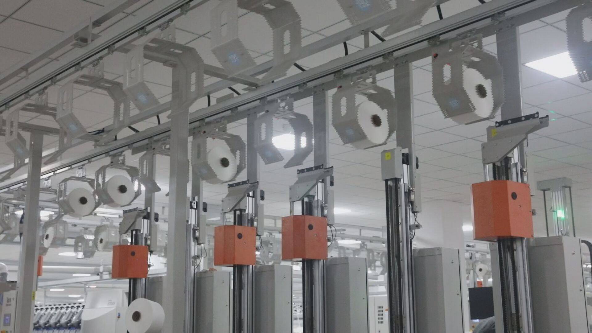 山东恒越丰新材料股份有限公司经理 沈剑:我们引进涡流纺纱机150台、配套线6套、梳棉机130台、并条机196台,空压机、冷冻机、空调、除尘机组等生产辅助设备和公用工程设备,形成年产80000吨多品种纤维的高品质混纺纱。