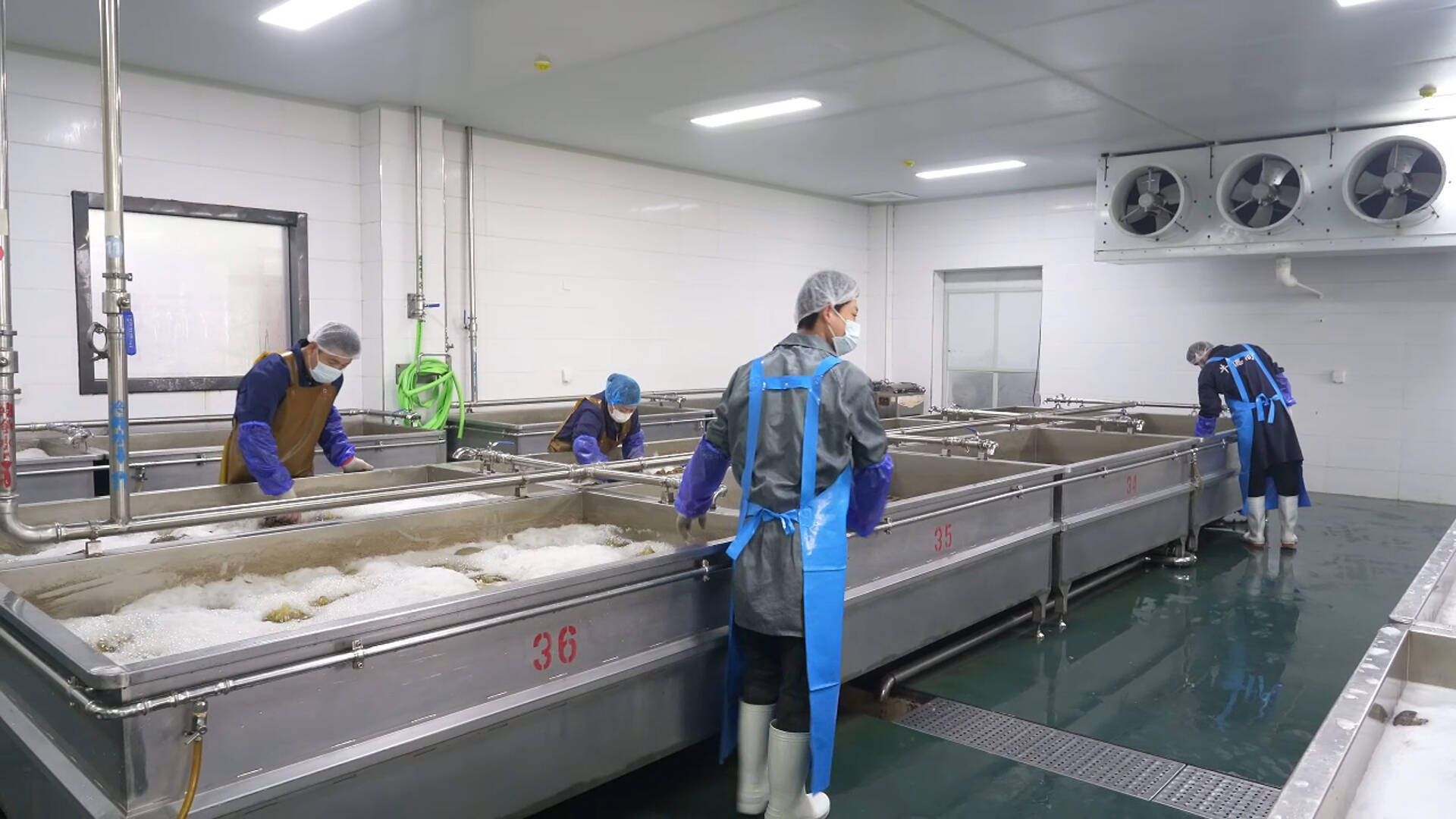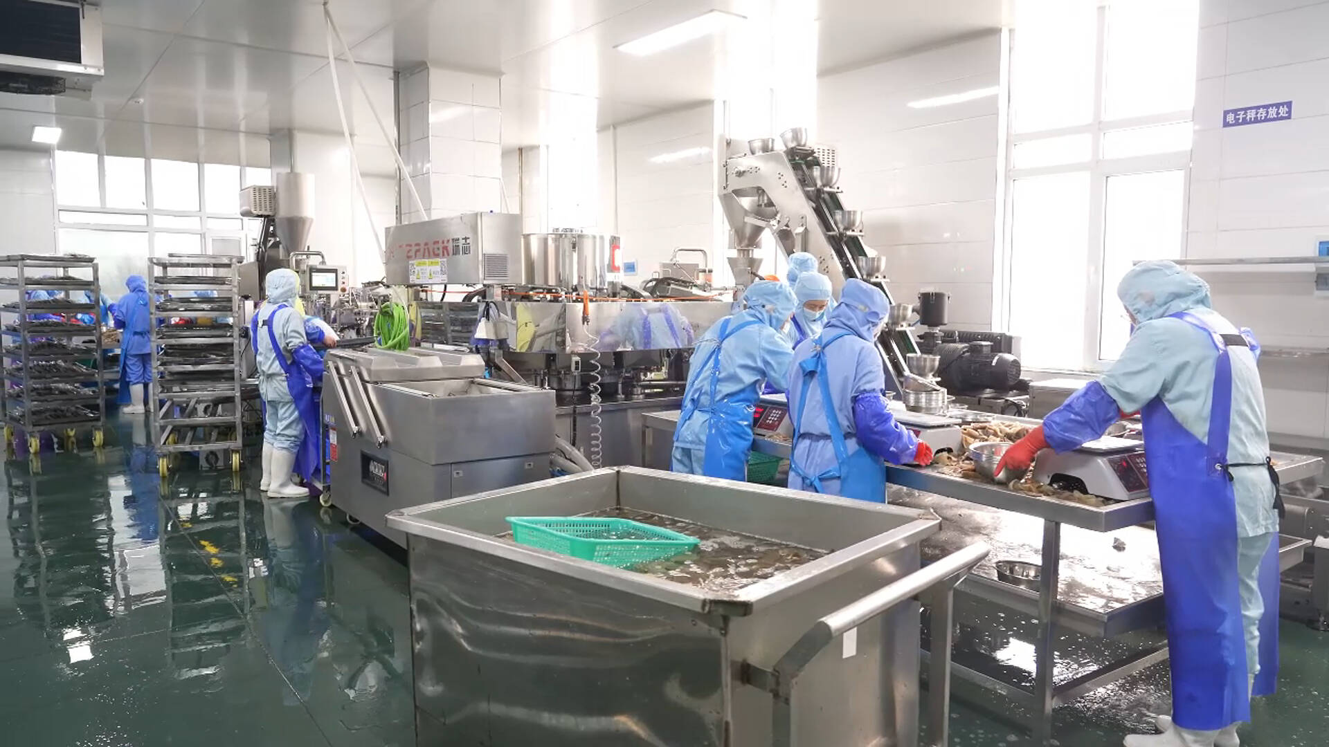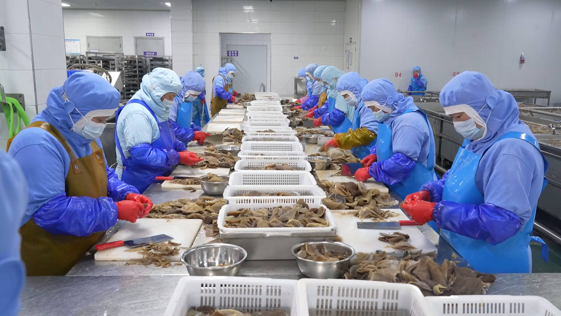 生产一线即是攻坚一线。在山东牛德尚食品生产车间内,自动化生产线高效运转,各环节工作人员分工协作、有序作业,毛肚产品经分装、封装、打包后,快速发往全国市场。