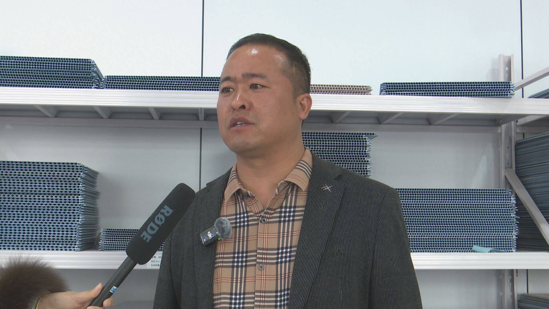 山东美艺新材料科技有限公司董事长 彭元补:我公司产品主要销售国内北京、上海、西安等各大城市,年产500万平方米,年收入5000万元,解决本地80余人就业问题,下一步的目标主要是销售全球、走向世界。