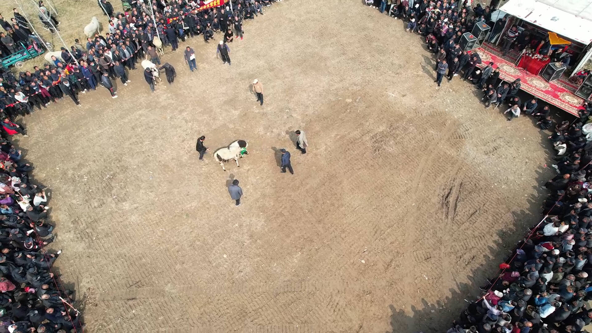 活动现场,舞龙、舞狮、划旱船、扭秧歌、大头娃娃等民俗节目轮番上演,热闹非凡。作为本地特色重头戏,斗羊比赛备受瞩目,参赛羊只激烈撞击,现场欢呼声、喝彩声不断,充分展现了传统民俗的独特吸引力。