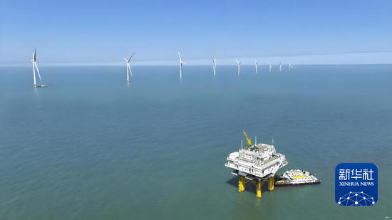 位于山东省东营市附近海域的渤中海上风电项目。新华社发