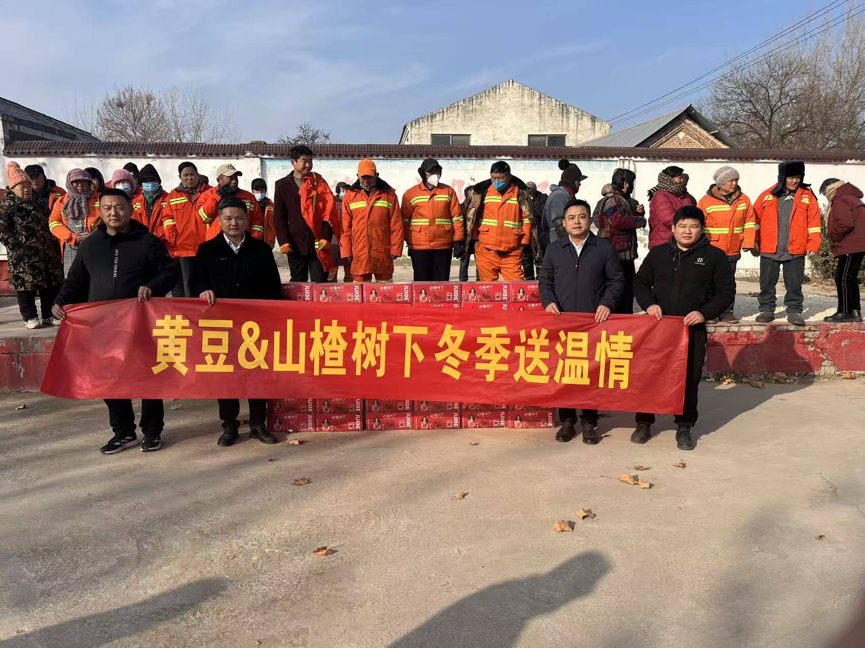 活动现场,两家企业对环卫工人不畏严寒、坚守岗位,为守护城市环境付出的努力表达诚挚敬意,并为他们发放1000双线绒手套和500箱山楂树下饮料。