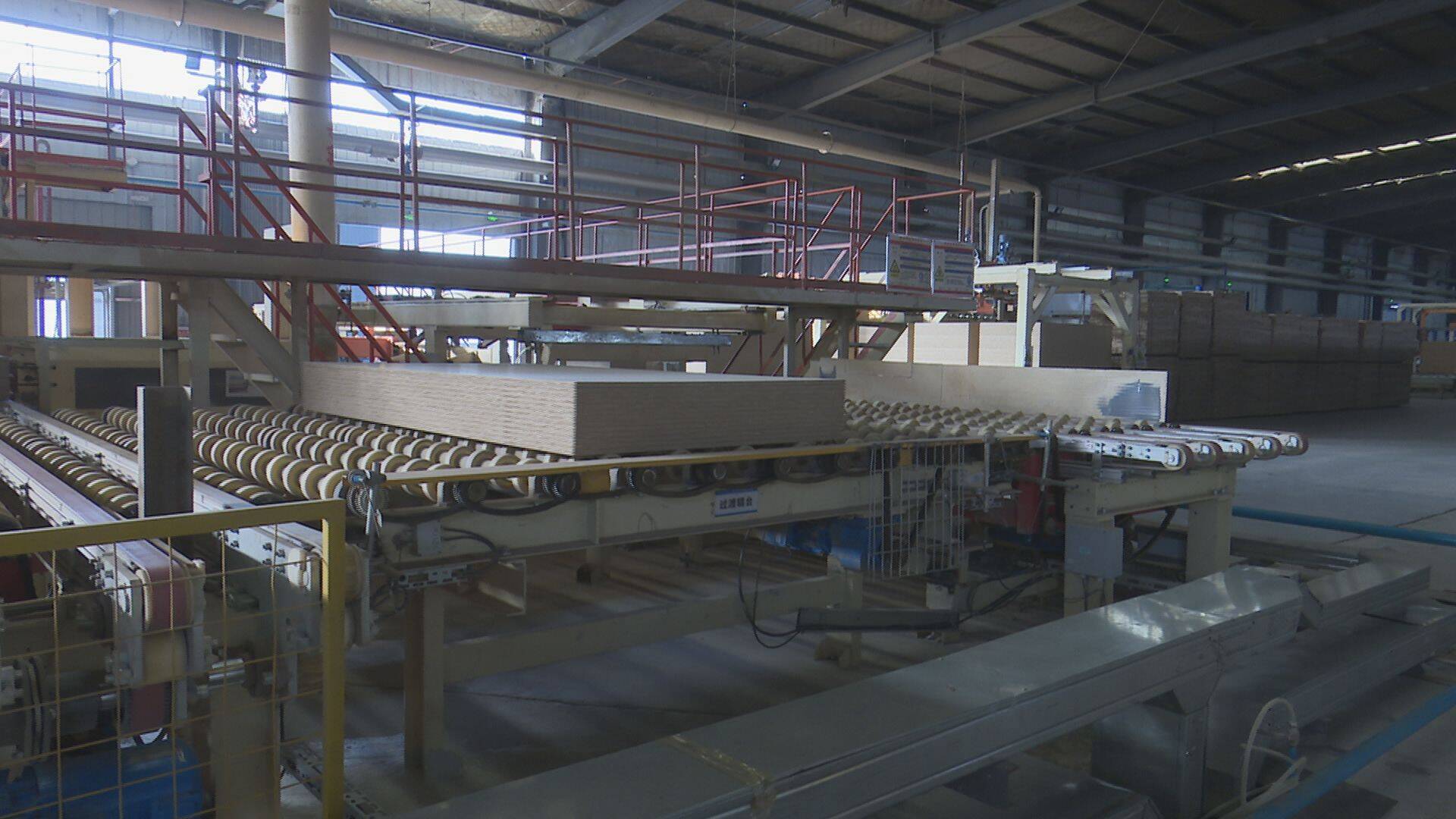 走进菏泽市宁丰木业有限公司生产车间,机器轰鸣,自动化生产线高速运转,工人们正熟练操作设备,一派繁忙景象。
