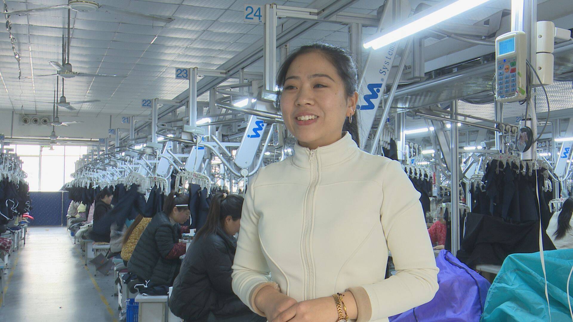 山东成益制衣有限公司二车间十五组组长 张庆:我们公司新一季的订单已爆满,现在我们正在加紧赶货,争取早点完成,回家过年,多赚点钱。