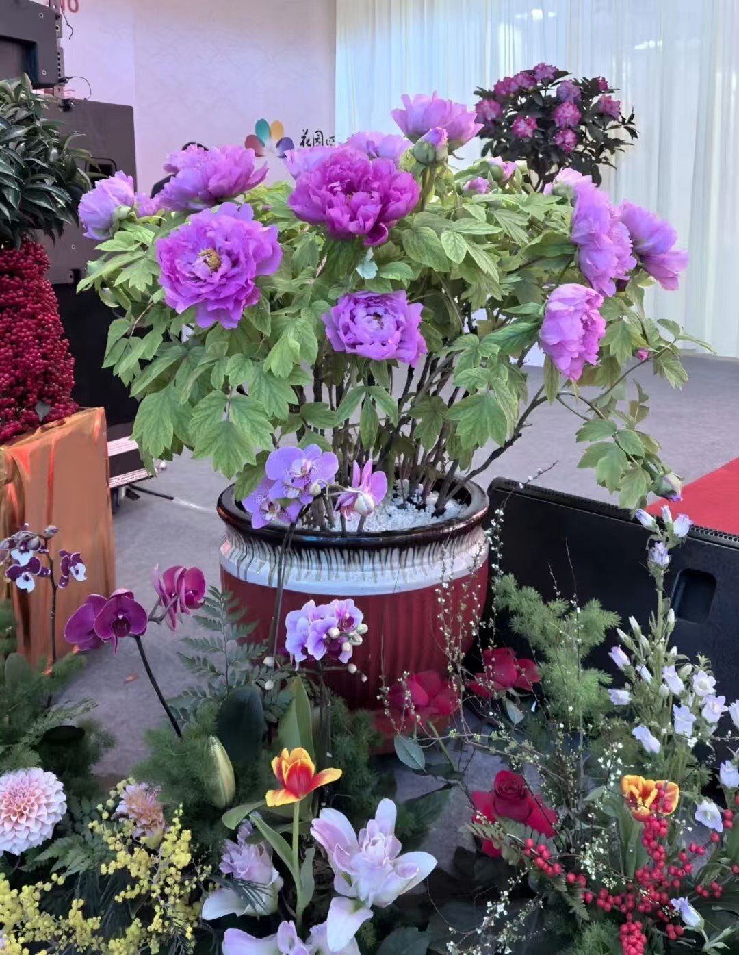 “我们此次参展的催花牡丹共200盆,包括乌龙捧盛、百园红霞、玉面桃花、玫红向阳、雪映桃花、紫二乔等20多个品种,均枝繁叶茂、花大色艳、生机勃勃。”菏泽诚美花木种植专业合作社总经理李洪勇介绍,他带领工作人员于1月17日开始布展,展览将持续至春节期间。雍容华贵的菏泽牡丹为北京市民奉献了一场国色天香的视觉盛宴,也送上了浓郁的新春气息。此次参展的牡丹植株圆满、枝条粗壮、根系发达,花色涵盖红、粉、紫等,确保达到最佳观赏效果。