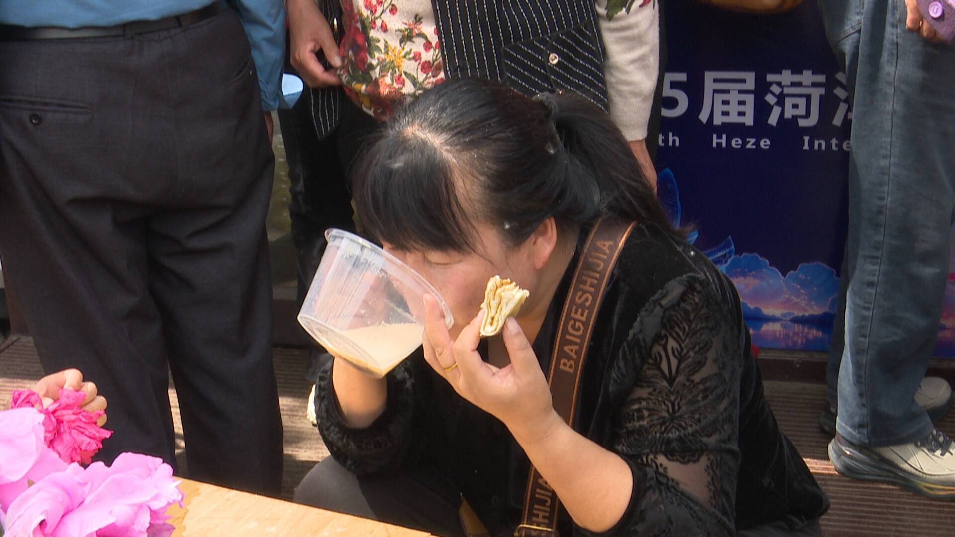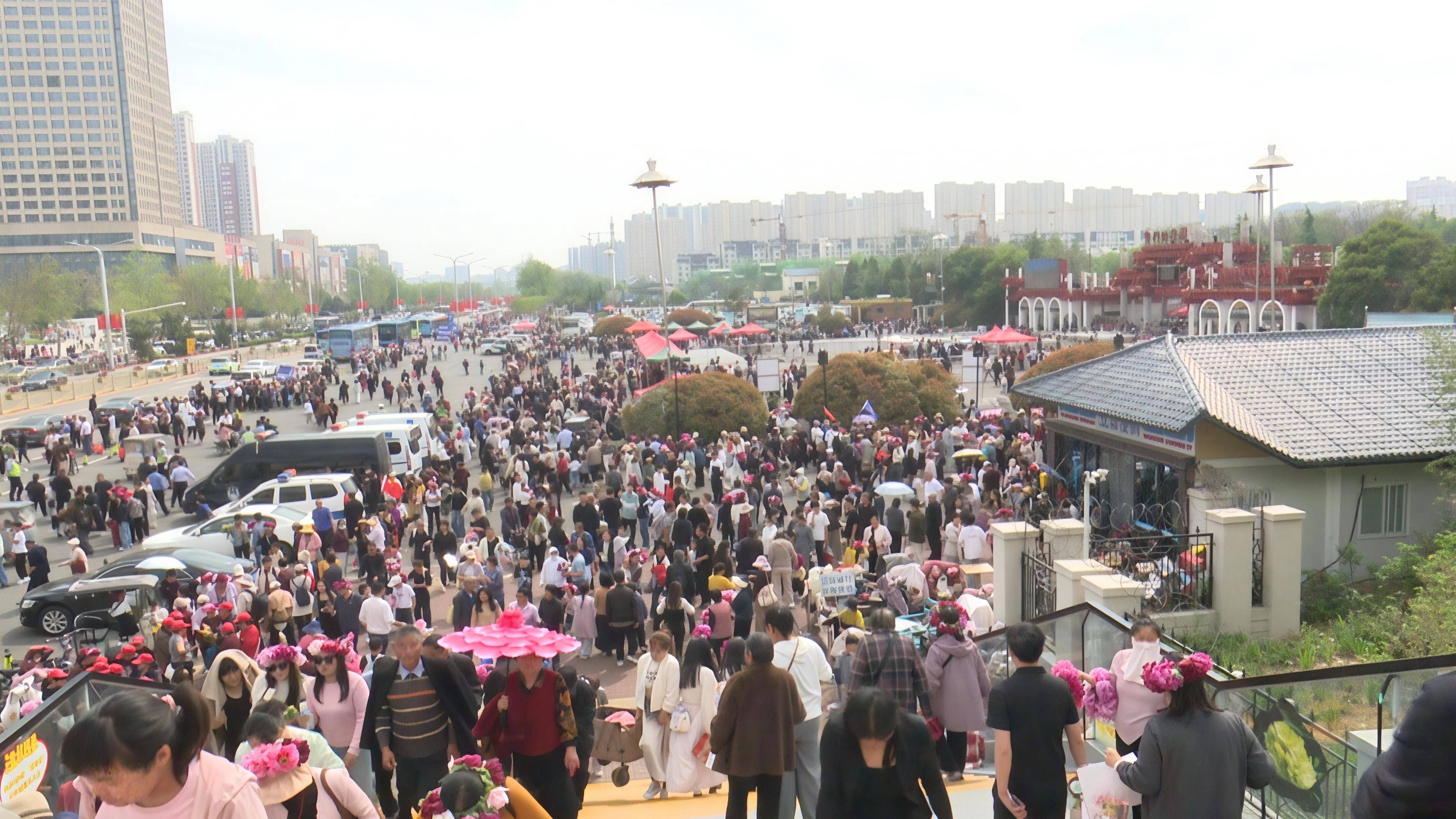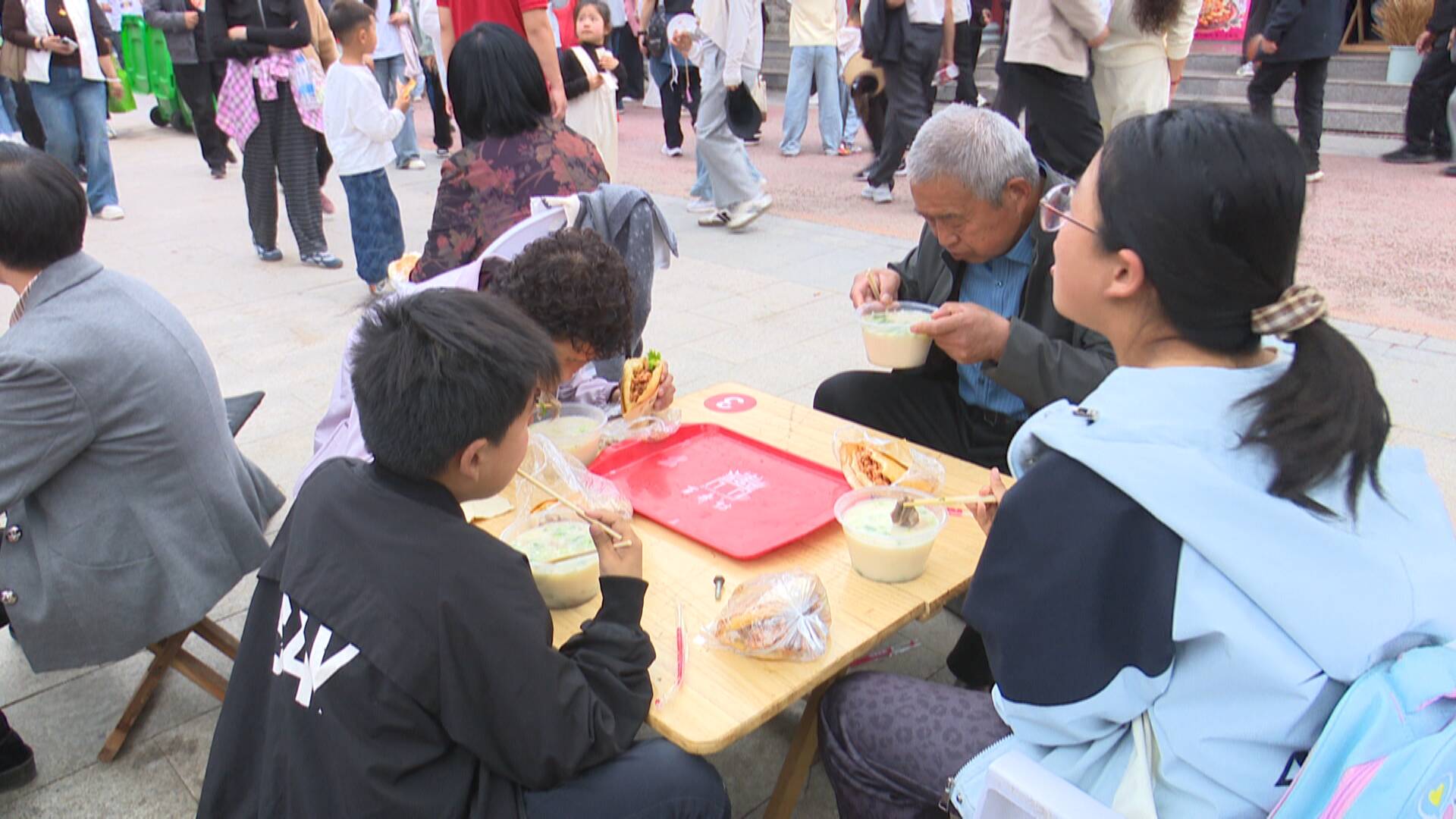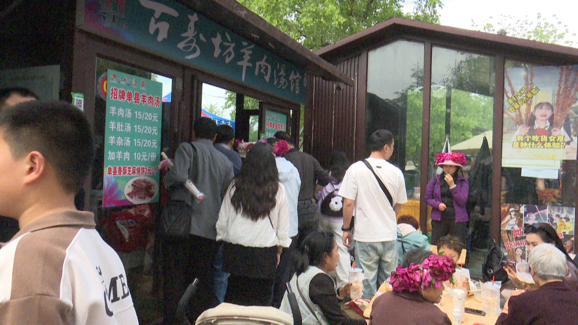 游客 吴先生:平时喝羊肉汤都是在老家店里喝,今天在牡丹花海旁边,喝着家乡的非遗美食,看着满城牡丹,心里特别自豪。